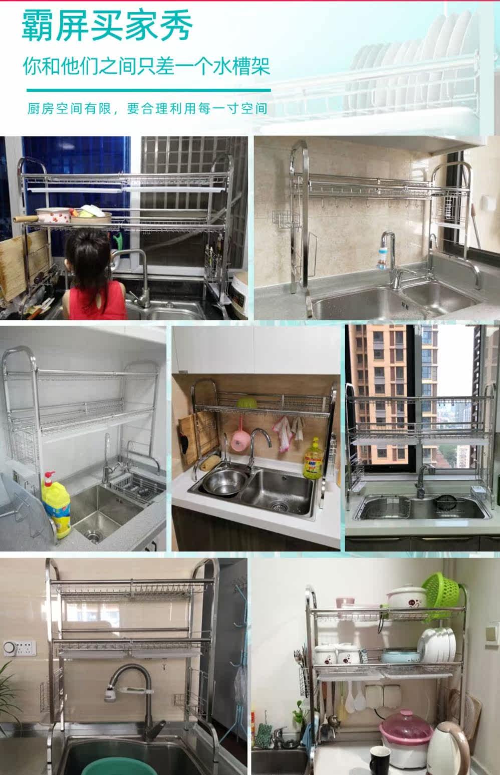 304 Кухня из нержавеющей стали, держащая на полке полки, приводится в карнику для стирки, промывка, дисплей дисплей, шнурки для хранения