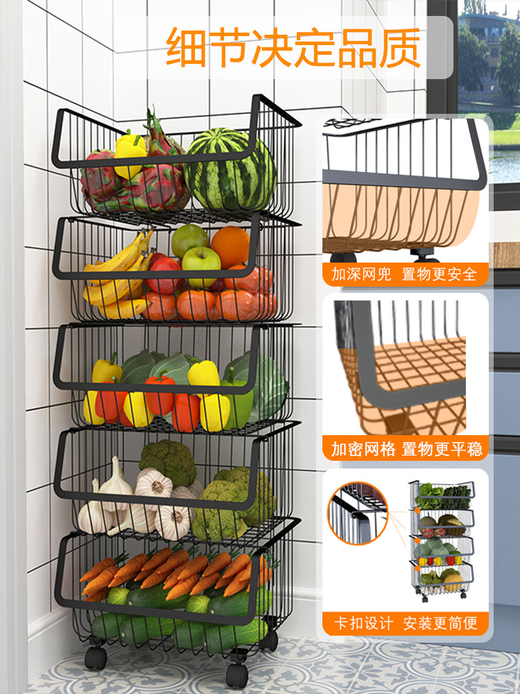 Черная кухонная стойка, бытовая напольная многослойная стойка для хранения, стойка для овощей, стойка для овощей, корзина для хранения фруктов, корзина для хранения фруктов