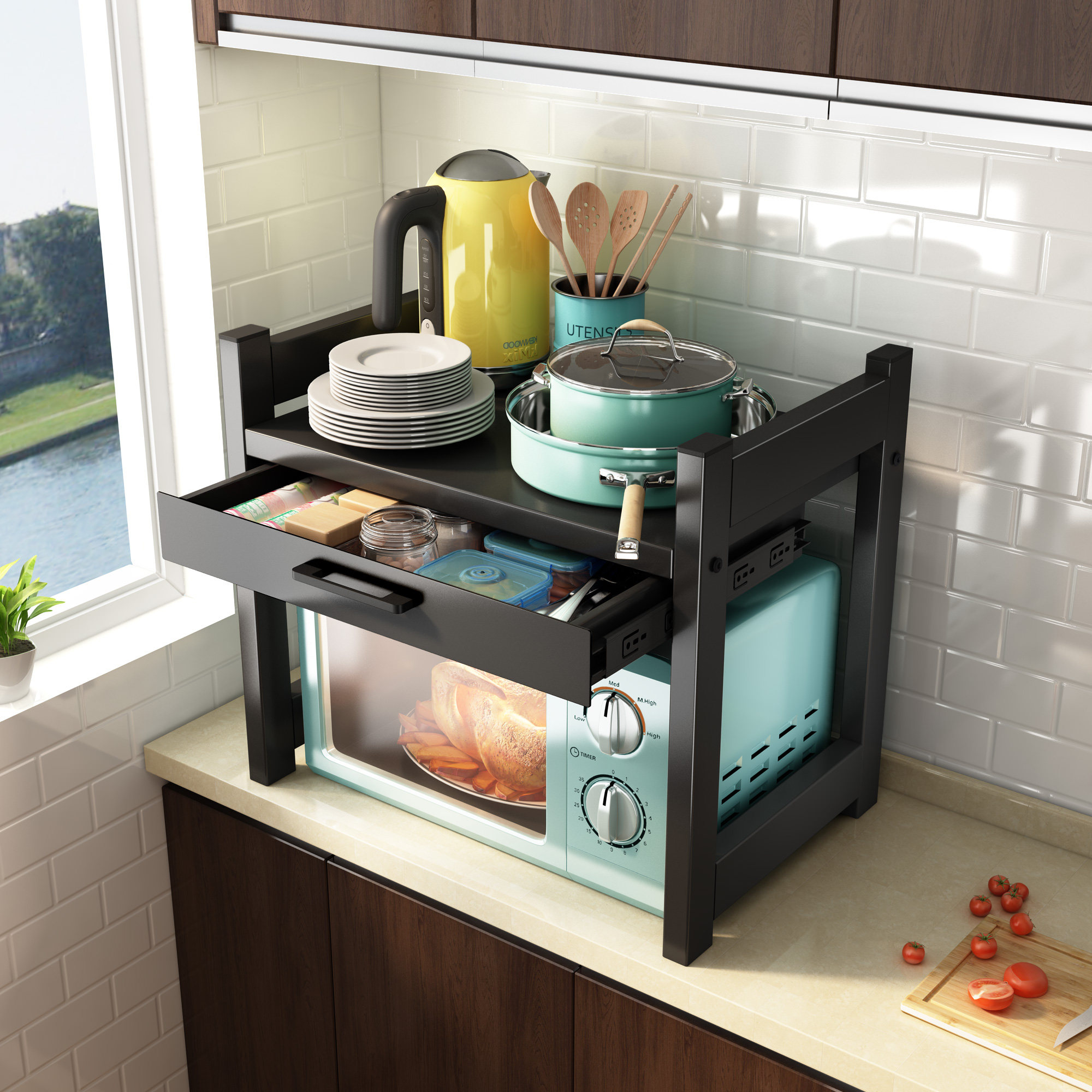 Кухонная микроволновая печь стойка для ремня столовая поверхность печь с электрическими поставками горшка полки двойное хранение