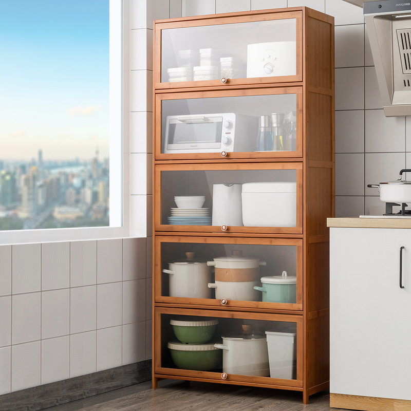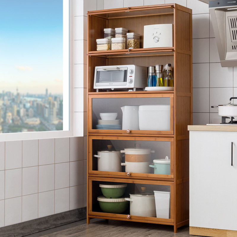 Кухонный бамбук набор для флип -дизайна стойка для хранения библейской шкаф микроволновая печь бамбука