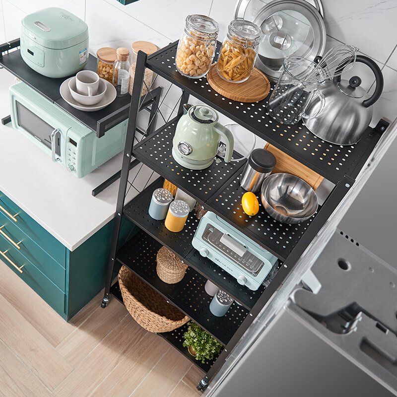Бесплатная установка складной кухонной полки, посадки многослойной духовки, положить кастрюлю, движущуюся стойку для хранения микроволновой печи