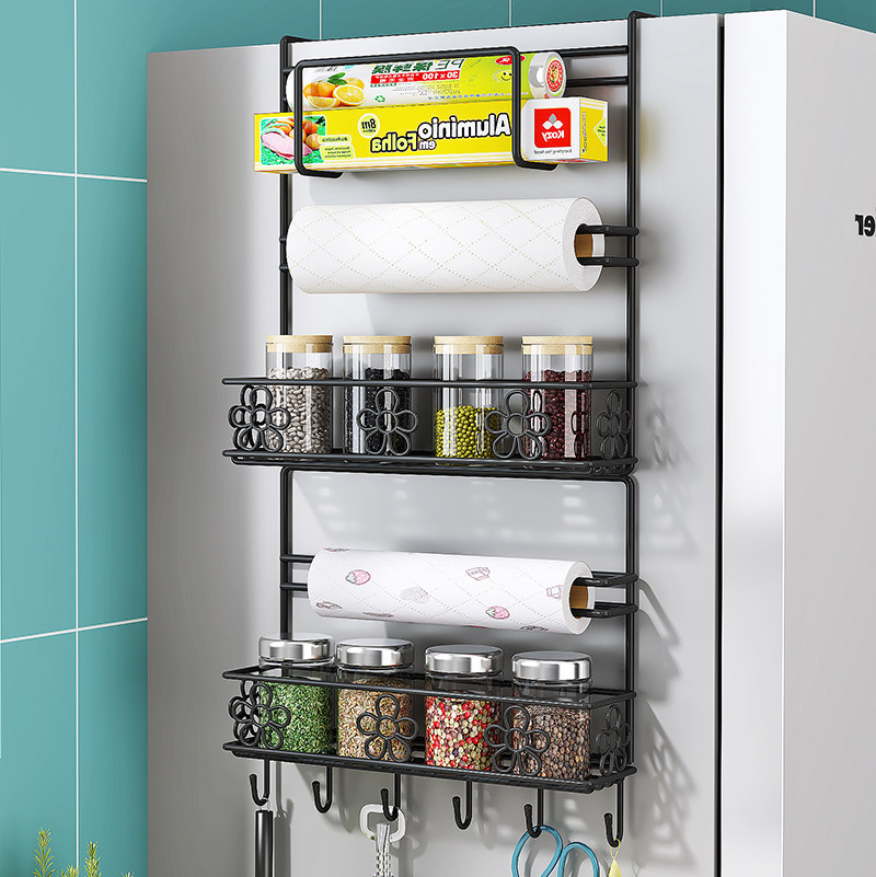 Многофункциональный холодильник висящий рамка на боковой панель холодильника кухонные принадлежности Установите стойку для хранения приправы для бумажного полотенца