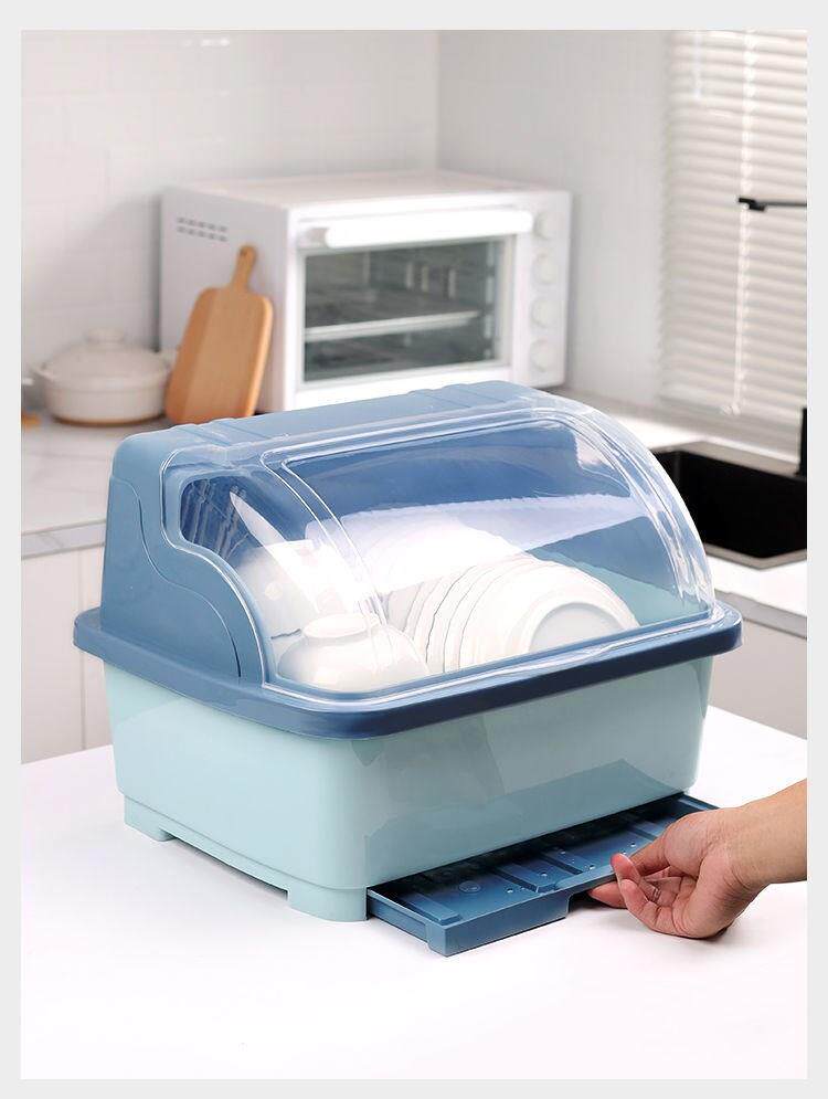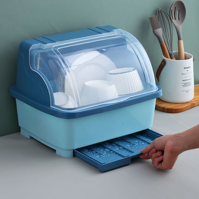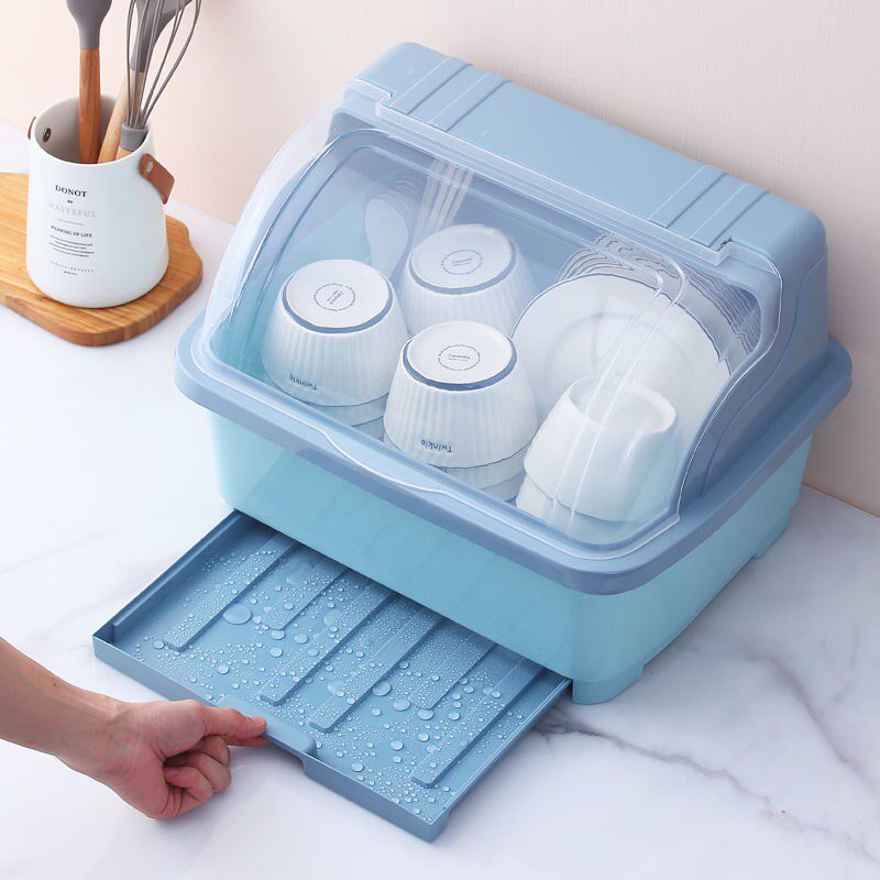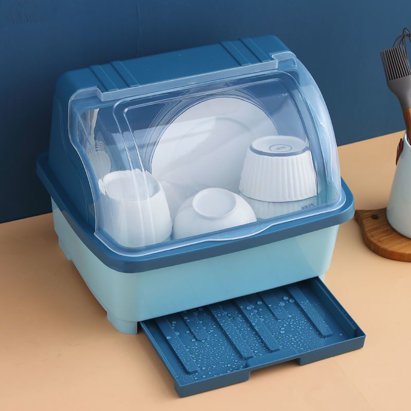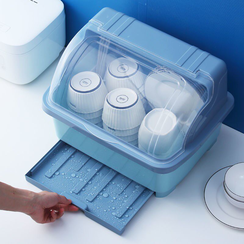 - Большая голубая тарелка с выдвижным ящиком и держателем для палочек для еды.