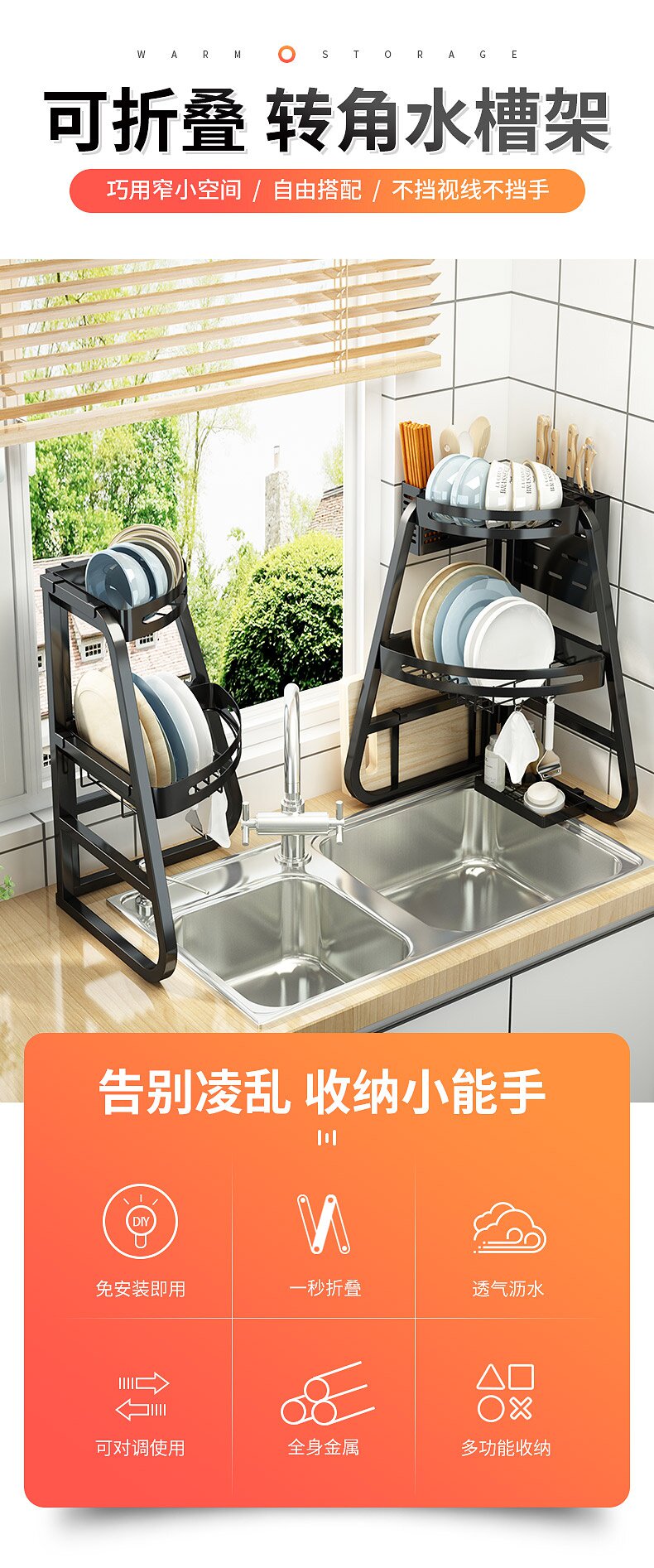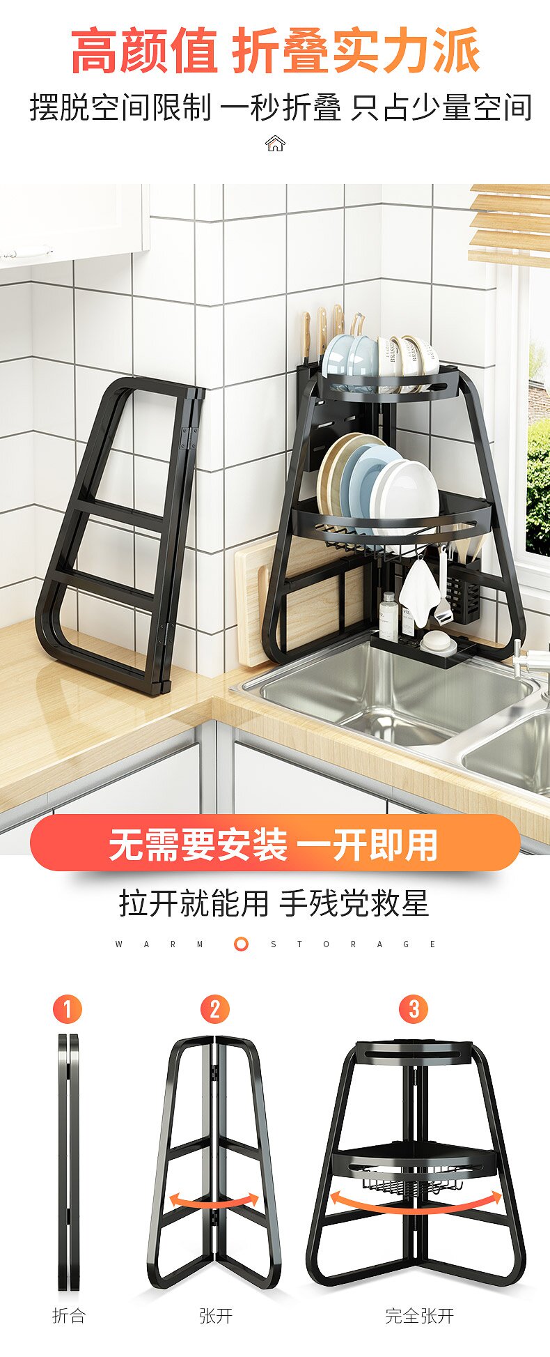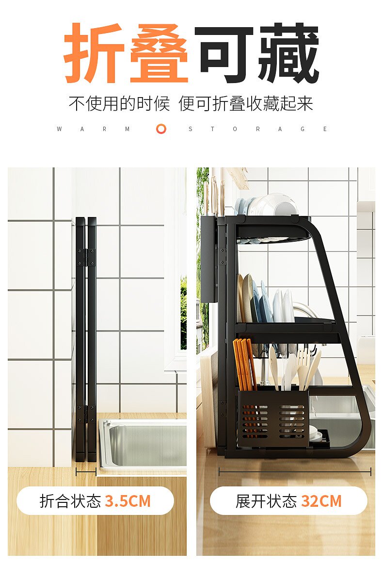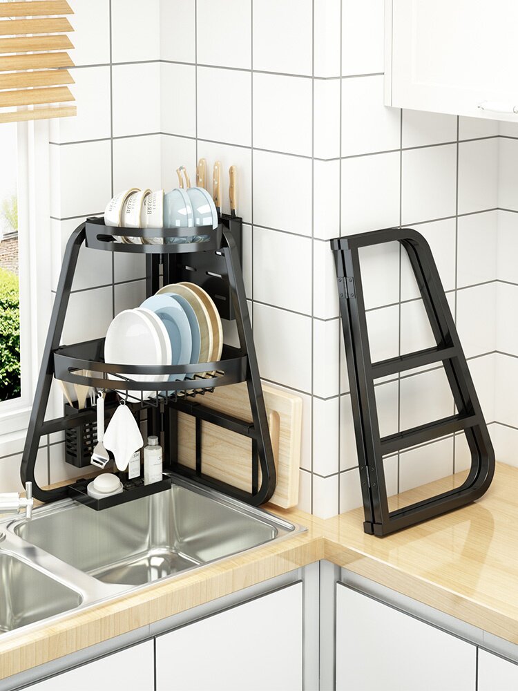 Складная угловая односторонняя раковина установите стойку кухни по посудомоечной машине, блюдо, блюдо, блюдо, блюдо, и сухость, чтобы хранить утечку хранения