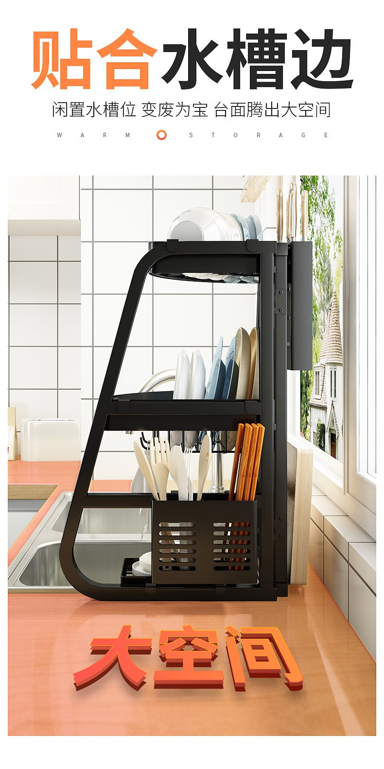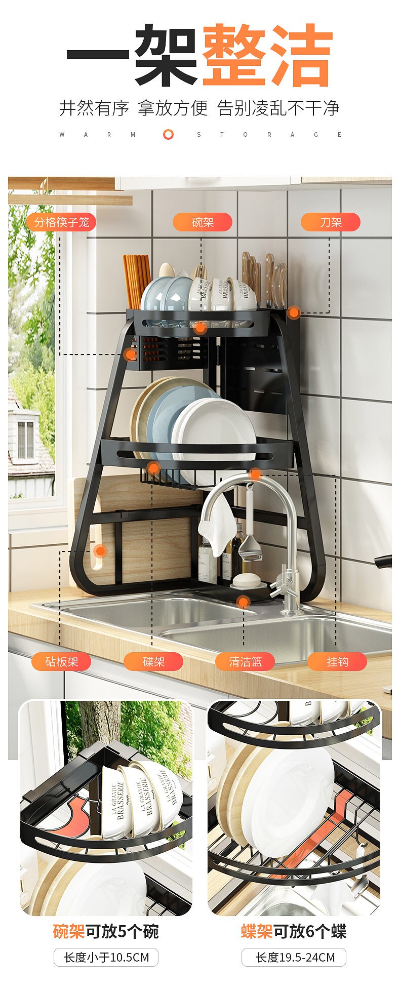- Подставка для посуды угловая мойка + подставка для разделочной доски + держатель ножей + палочки для еды