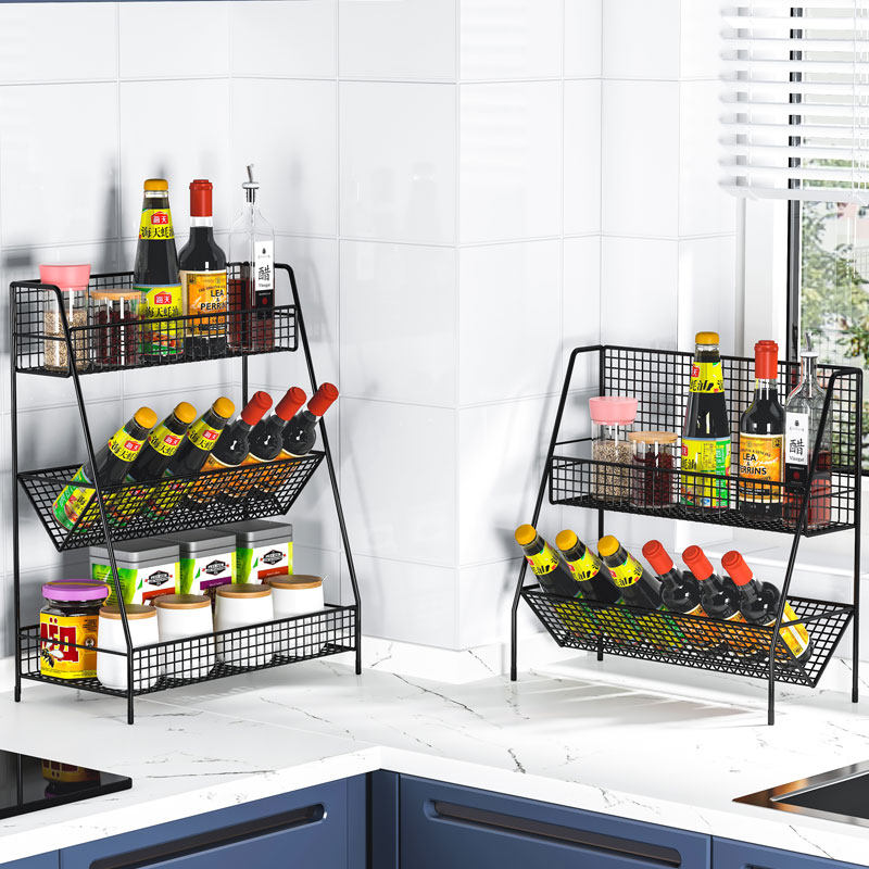 Поместите масляный соленый соус и уксусная полка кухонная поверхность приправы для приправы для хранения.