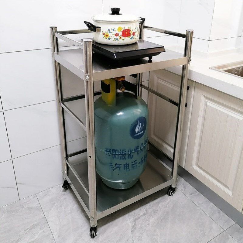 Стойка из нержавеющей стали с колесной стойкой для ограждения с газовой плитой газовой плиты Двойная кухонная мобильная тележка с двойной слойной кухней