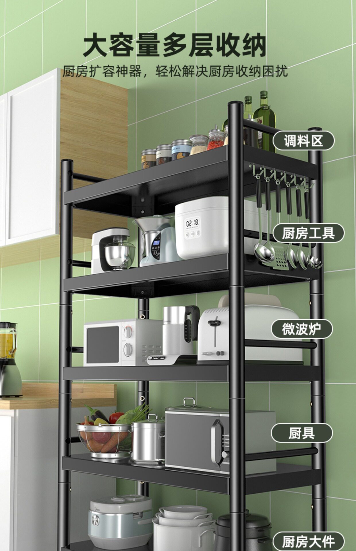 Кухонная полка пол -Многослойная многослойная микроволновая печь для хранения стойки для хранения стойки для хранения