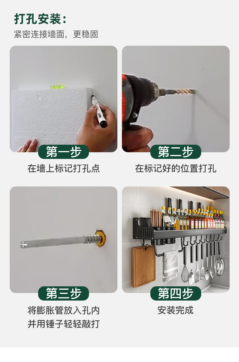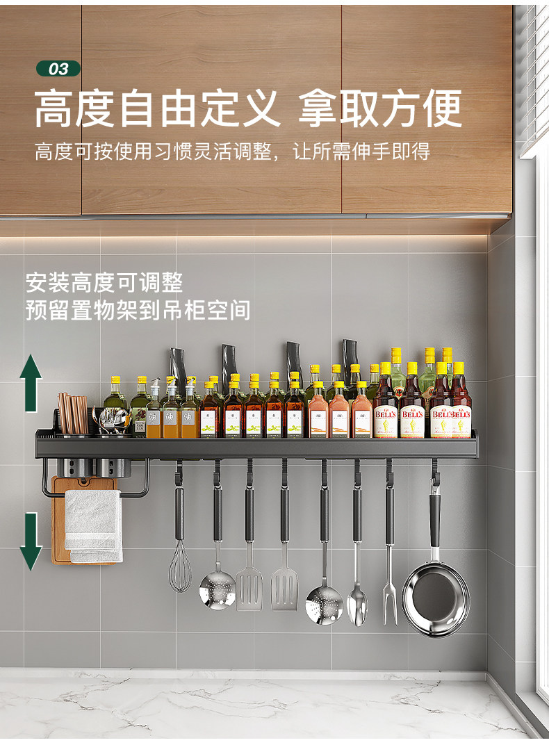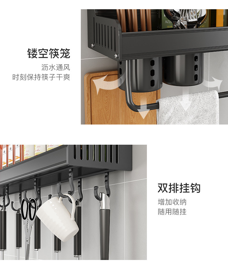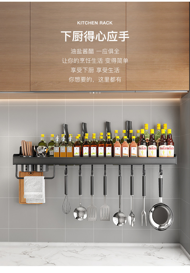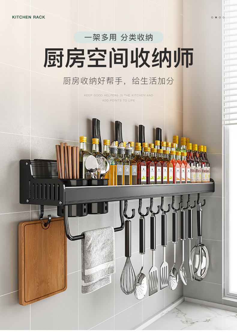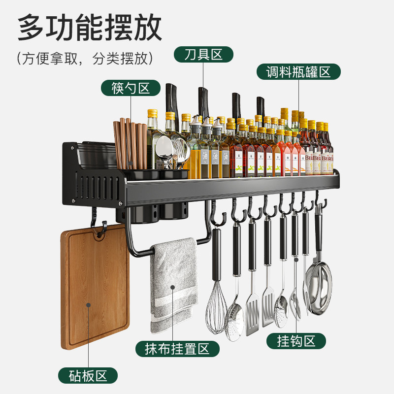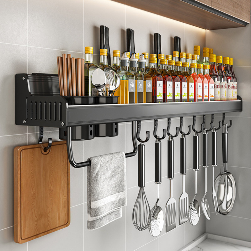 Кухонная полка дома использует отверстия на стене -на стене -приправа для приправы для приправы для хранения.