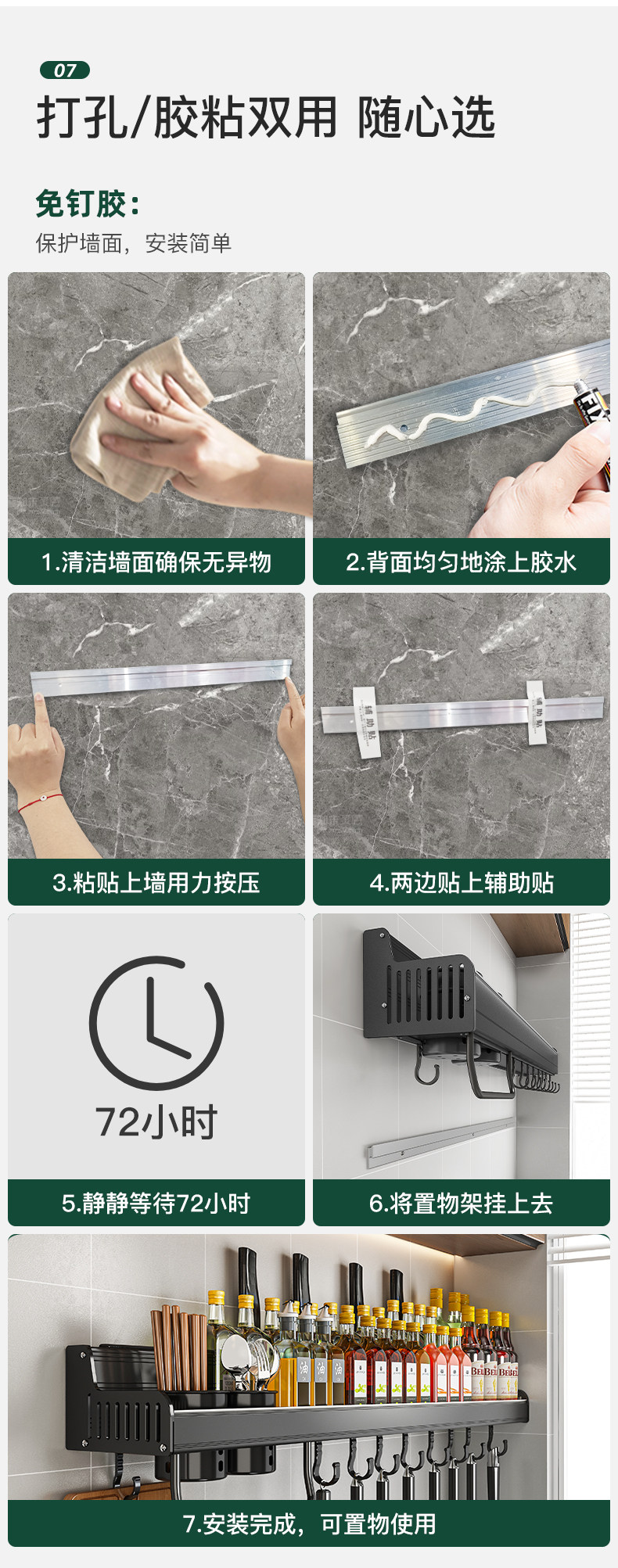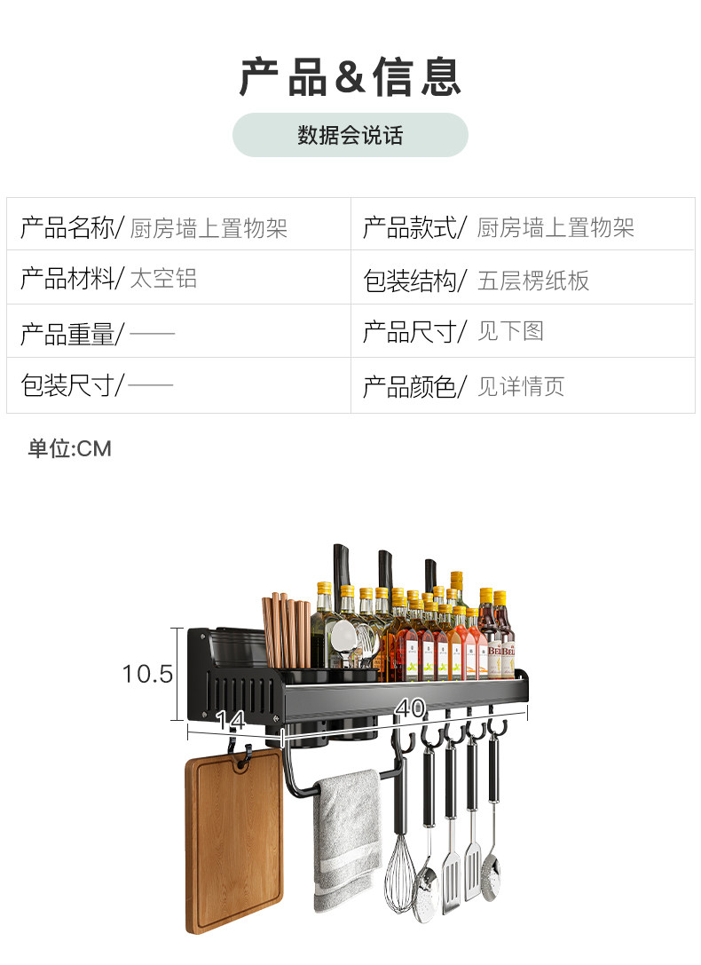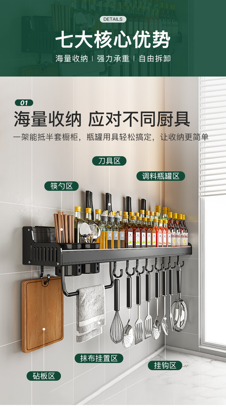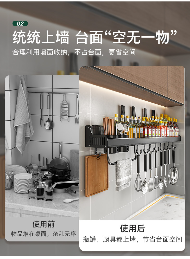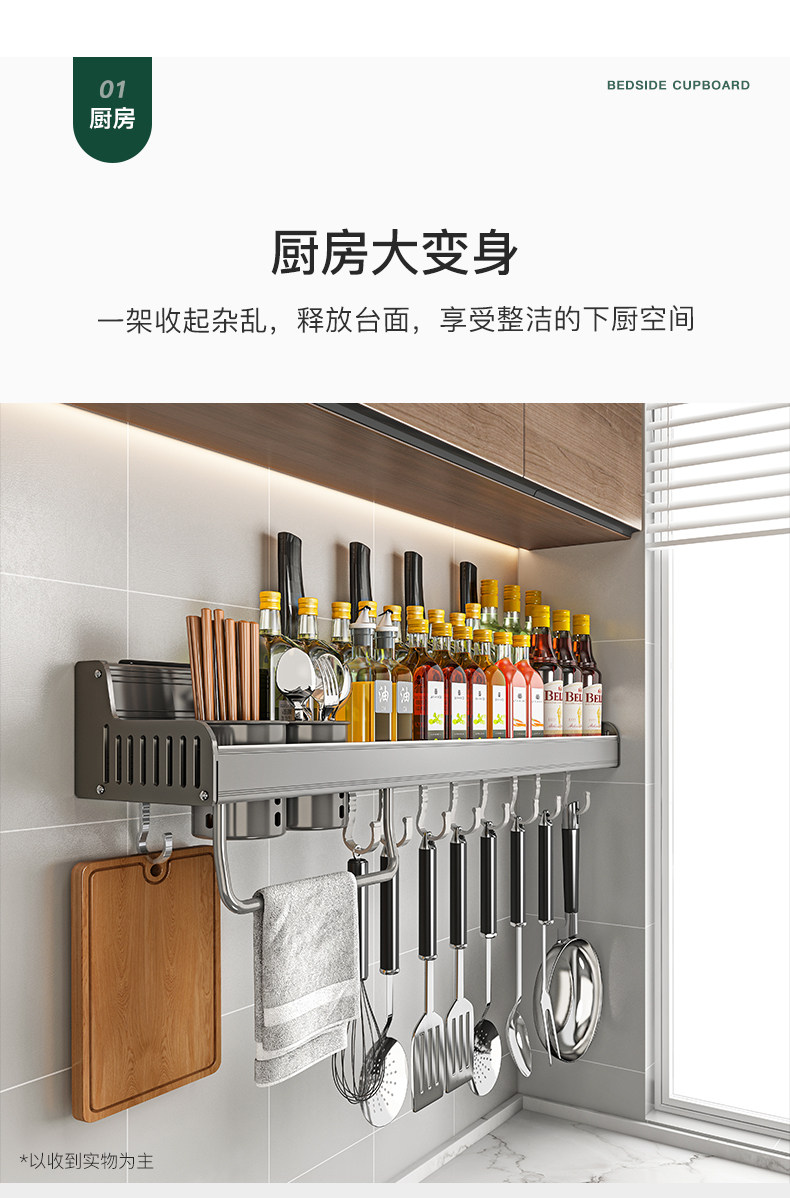 Кухонная полка дома использует отверстия на стене -на стене -приправа для приправы для приправы для хранения.