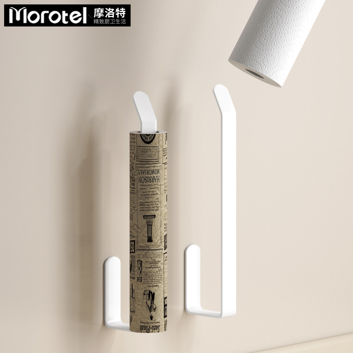 Кухня белая бумажная крючок крючок рулон держатель бумажной стойки пластиковой пленки без удара на кухонная стойка для хранения кухонной стойки на стенах