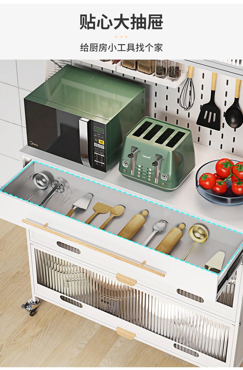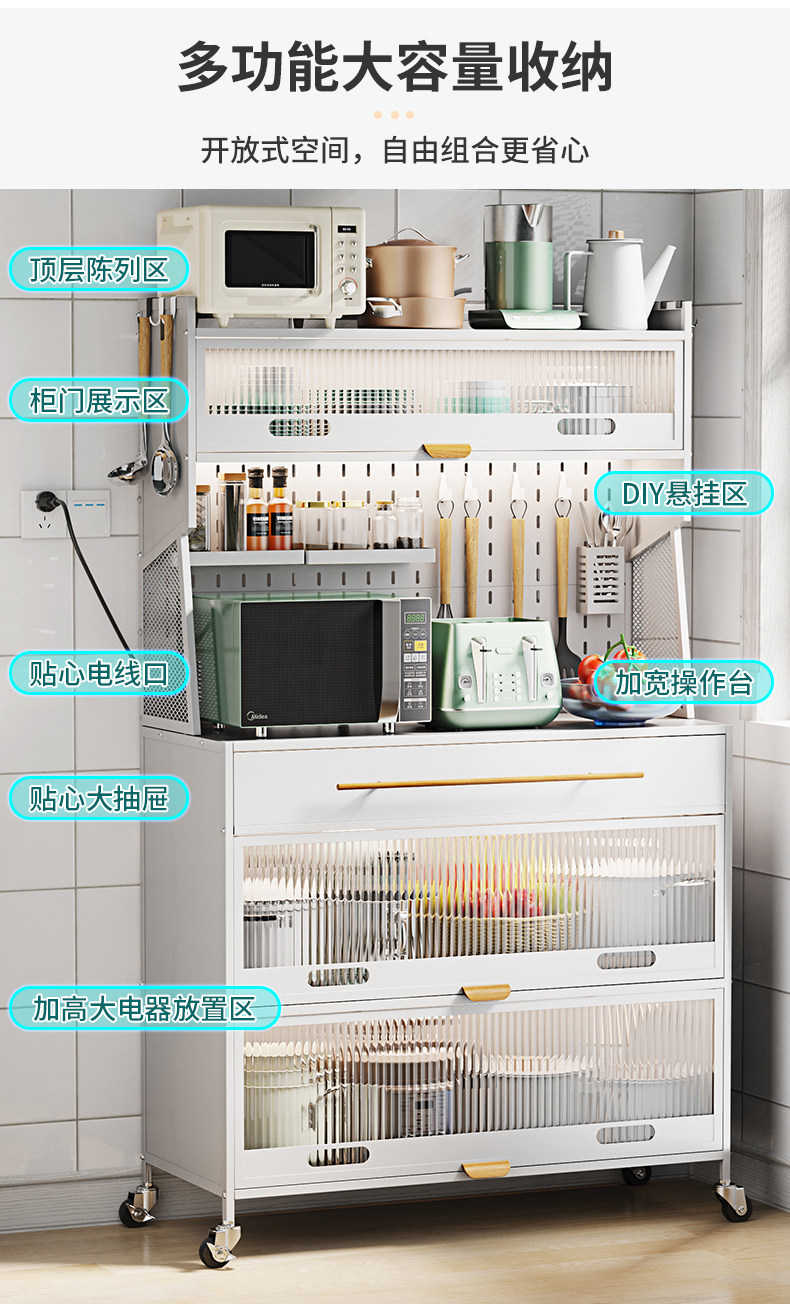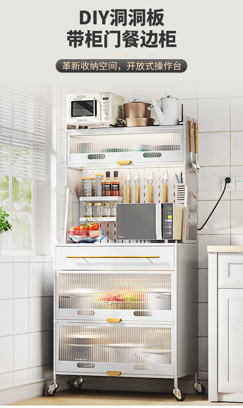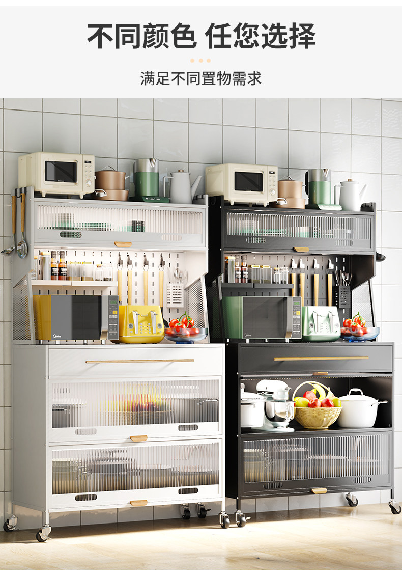 Контейнер для хранения кухонного блюда прислонился к стене и приземленный многослойный шкаф с ящиком многофункциональной стойки для хранения