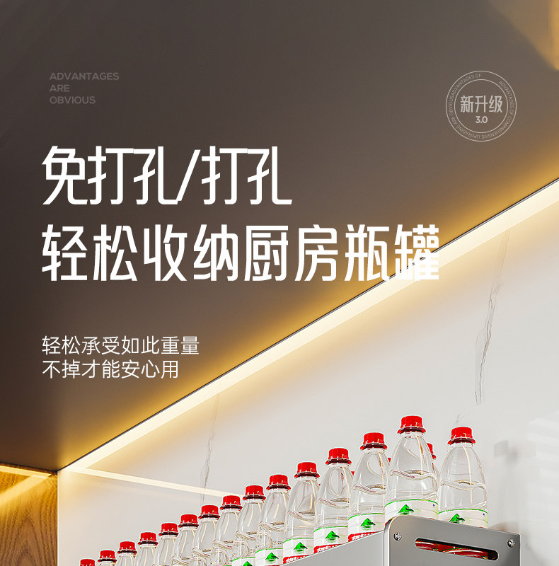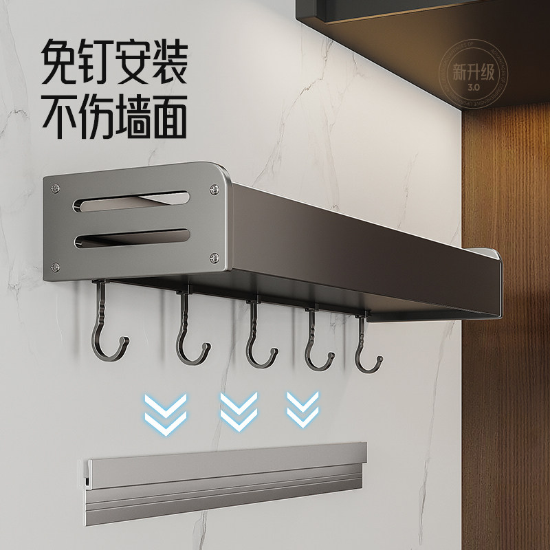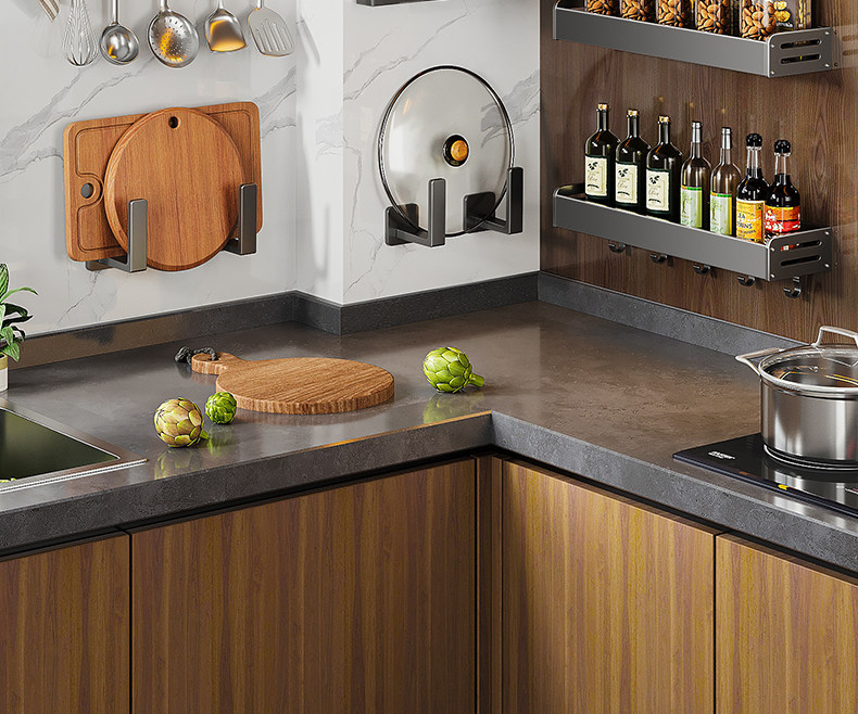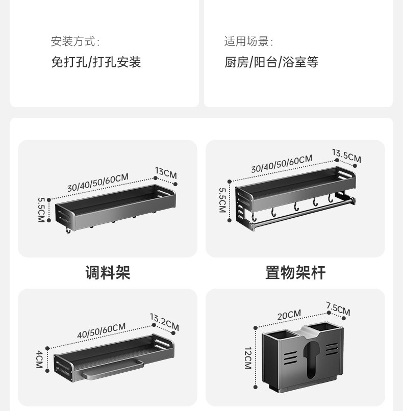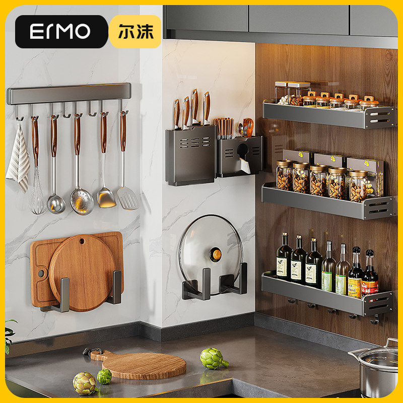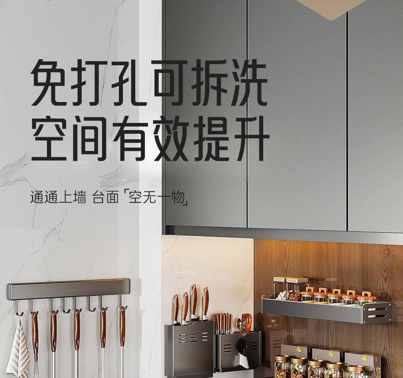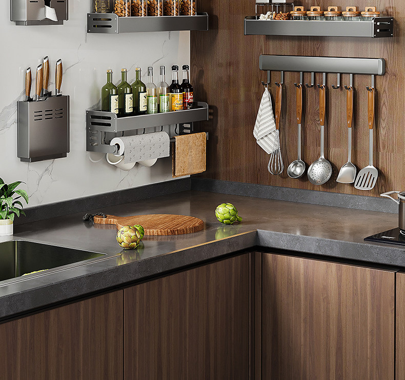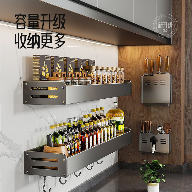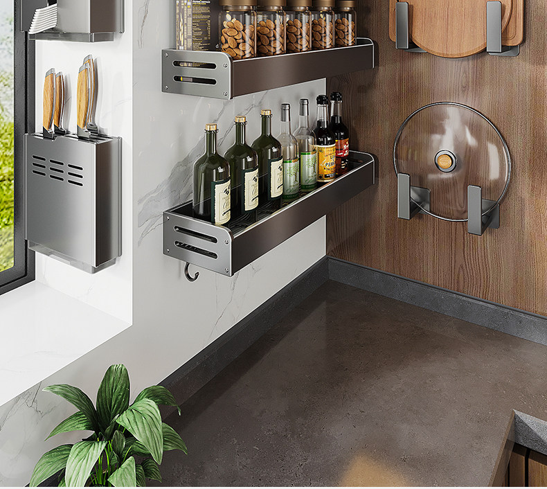 Серая кухонная полка для хранения без перфорации, настенная полка для банок для приправ, настенная полка для приправ, многофункциональная полка для хранения банок для приправ