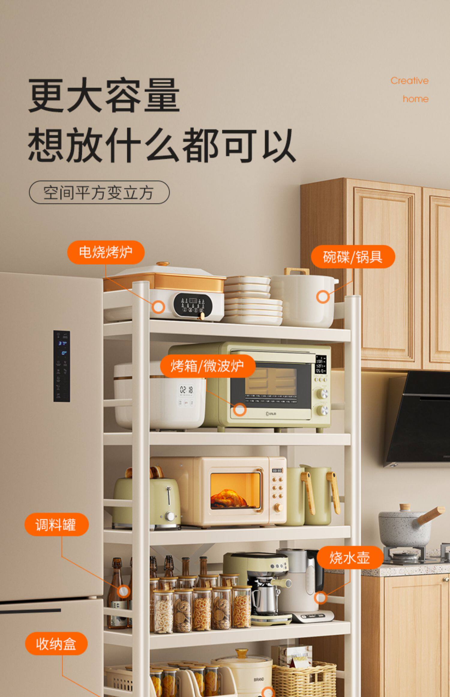 Carba Kitchen Shelf Landing Multi -Layer Home Pust Microwave Microbeale Pot Shelc