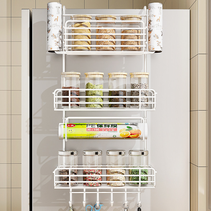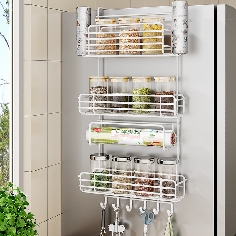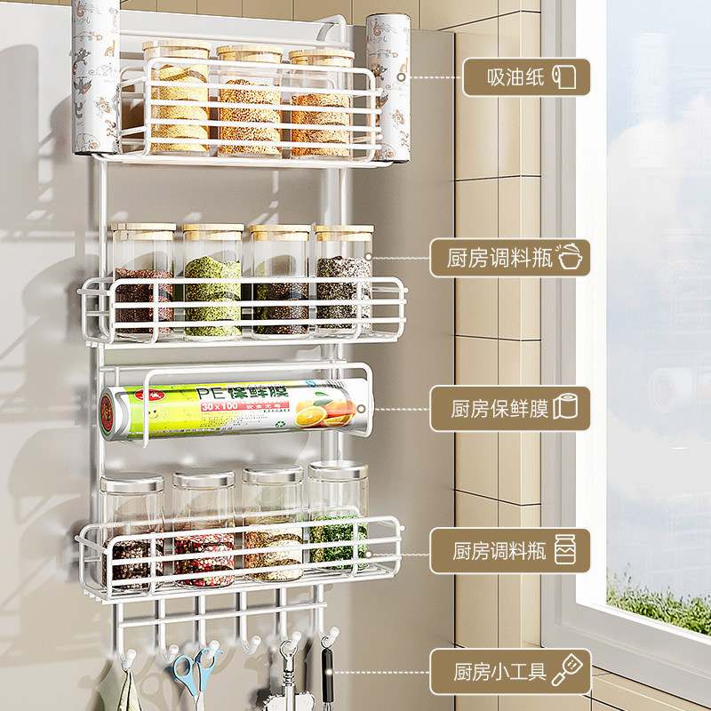 Кухонная стойка для хранения холодильника, боковая полка для хранения, пластиковая упаковка, бутылки для приправ, различные артефакты, подвесная стойка на боковой стене без перфорации