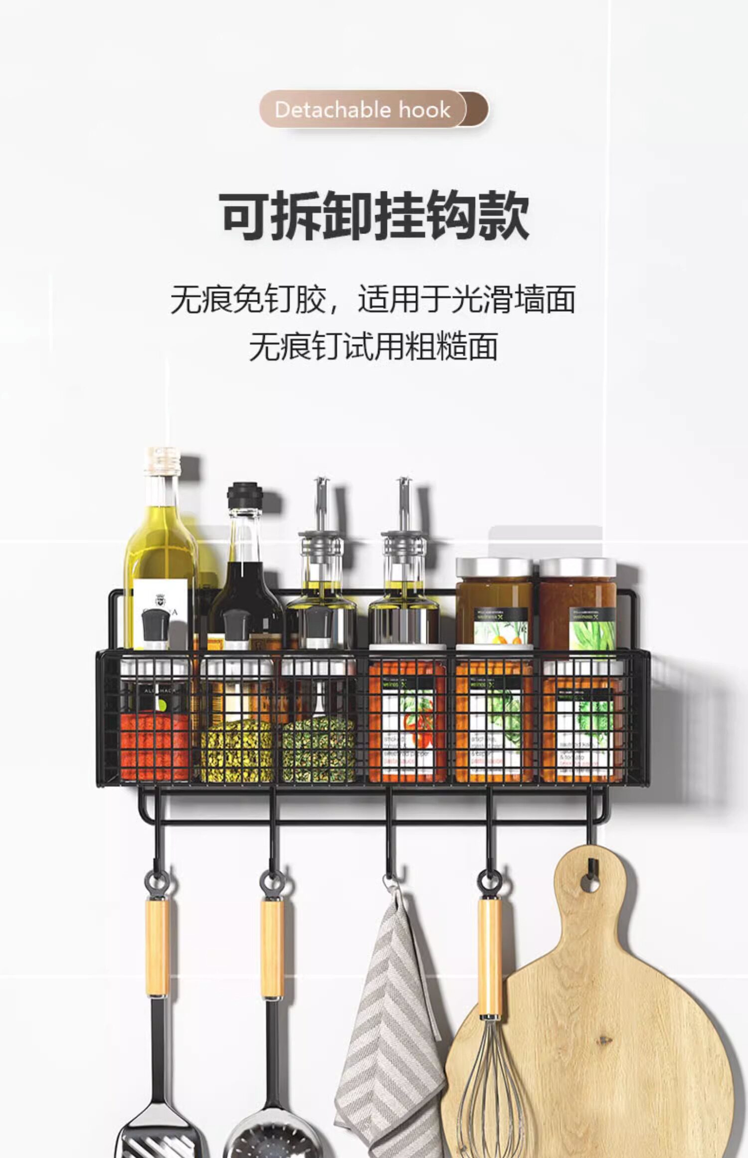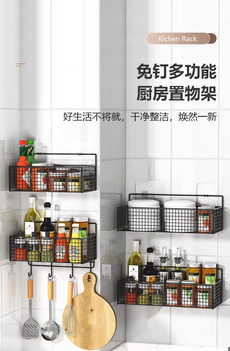 Кухонная стойка многофункциональная бесплатная приправа без удара, настенная настенная настенная настенная стена, имбирь, чеснок, различные артефакты