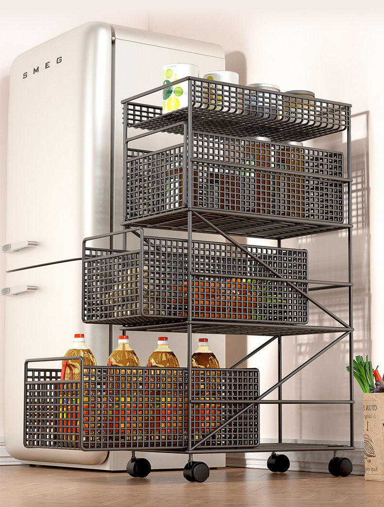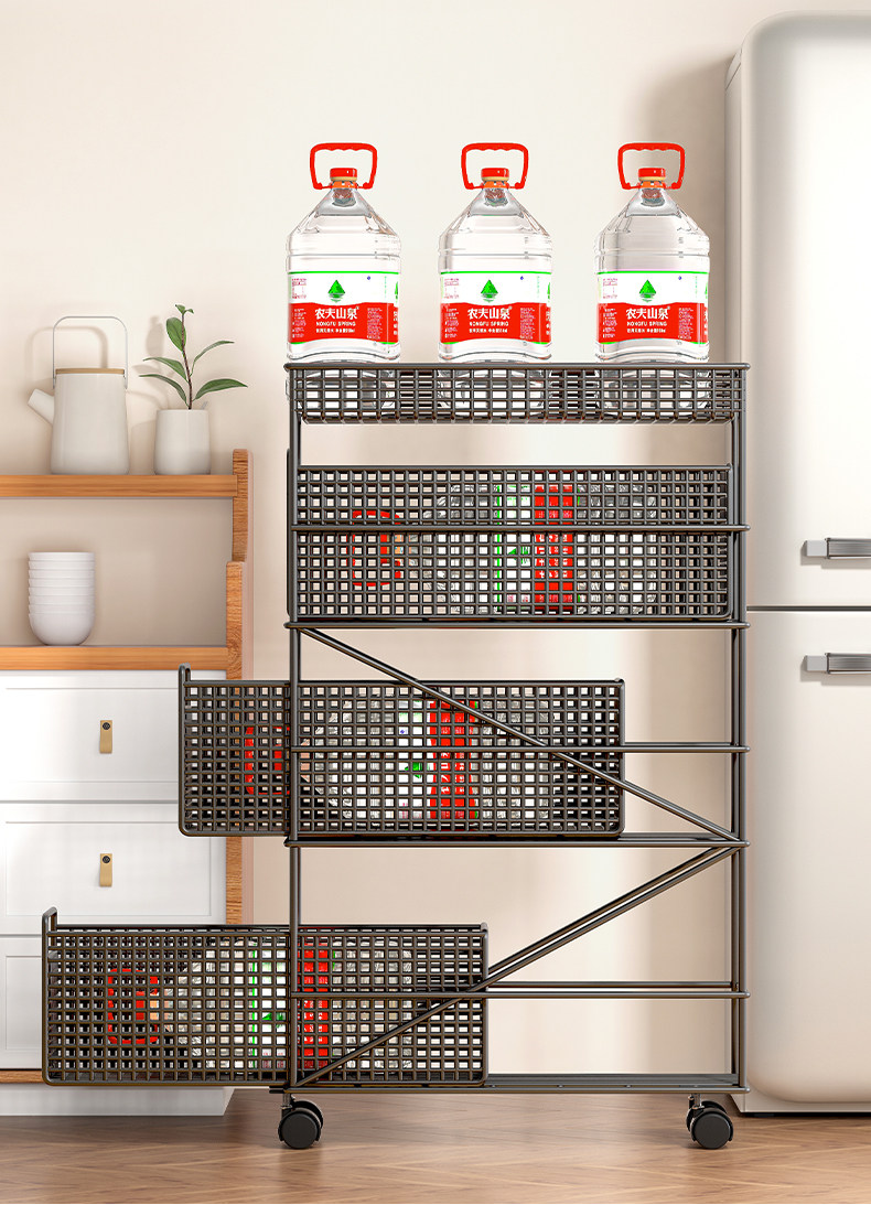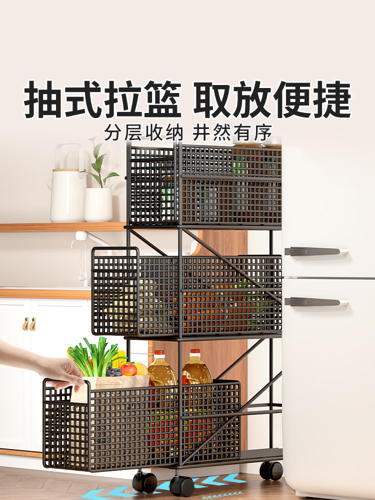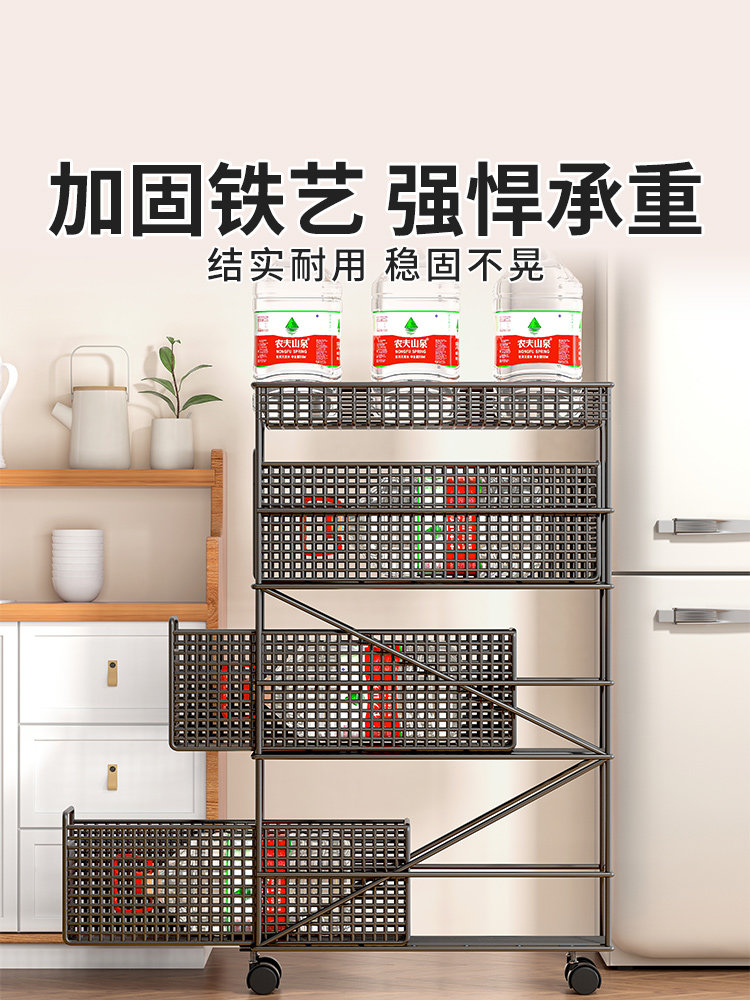 Кухонная швейная стойка узкая холодильника посадка многослойных фруктов и стойка для хранения овощей может перемещать небольшую корзину