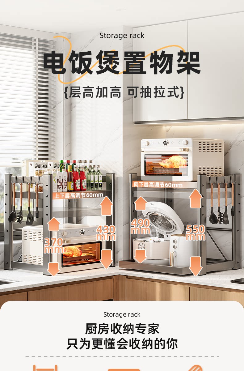 星优 Потягивание рисоварки, чтобы поместить стойку кухни, многофункциональная духовка, микроволновая печь с жареным горшком, полка хранения