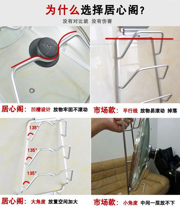 Крышка кухонного горшка, полка крышки горшка, многофункциональная стена с стеной с стеной, поглощающая дом без удара, на полке хранения без удара
