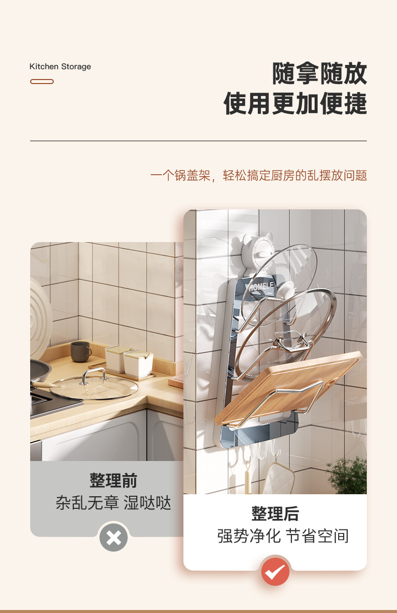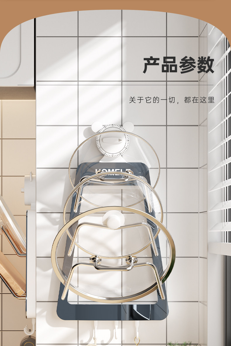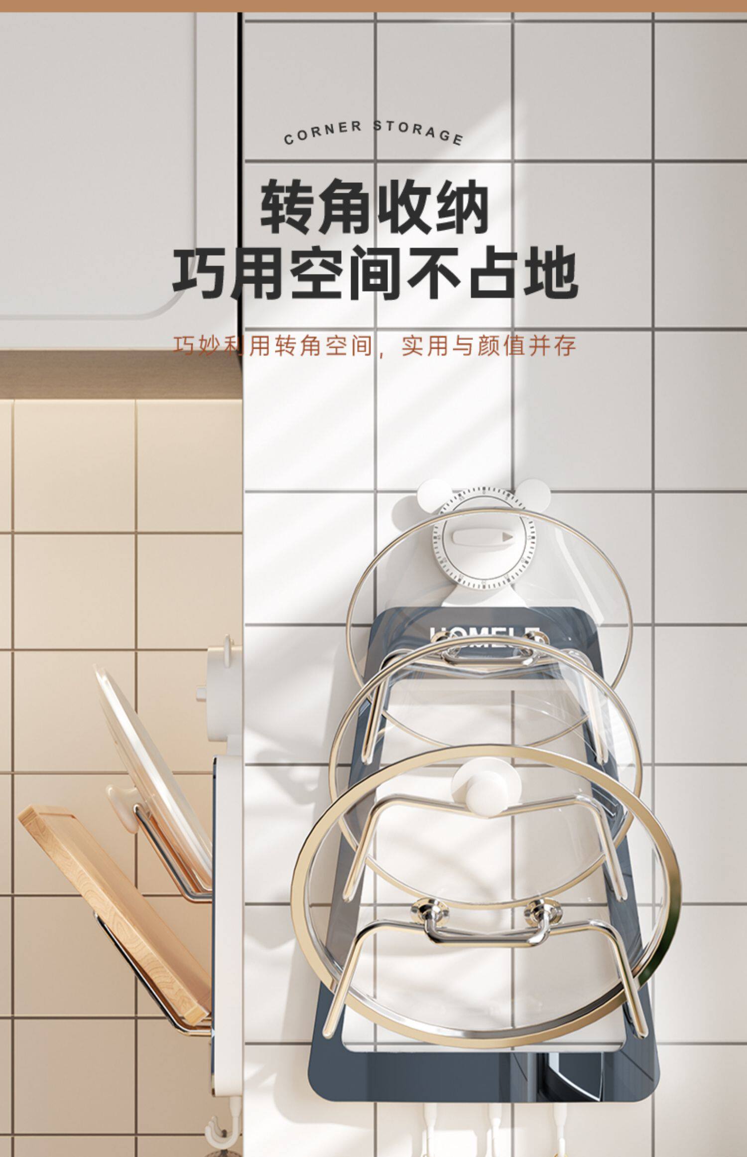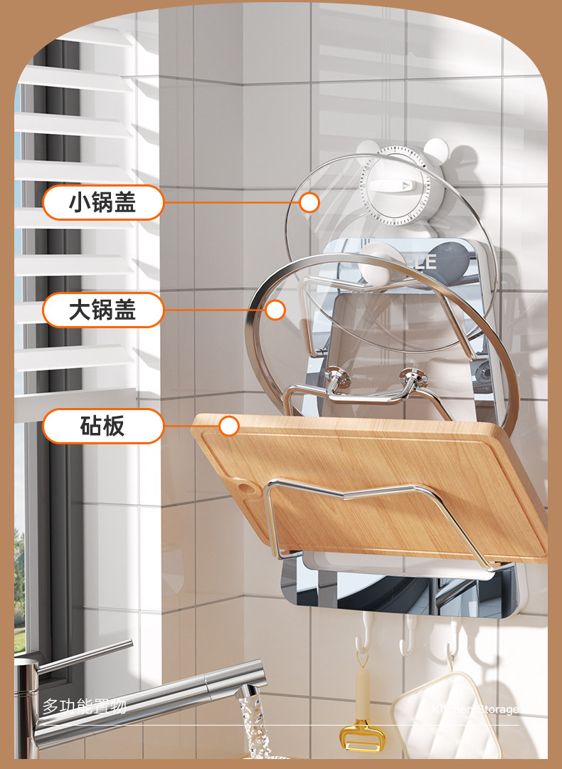 Полка для крышки кастрюли, настенная кухонная полка для хранения без перфорации, многофункциональная бытовая стойка для хранения, стойка для разделочной доски, многослойная стойка для разделочной доски