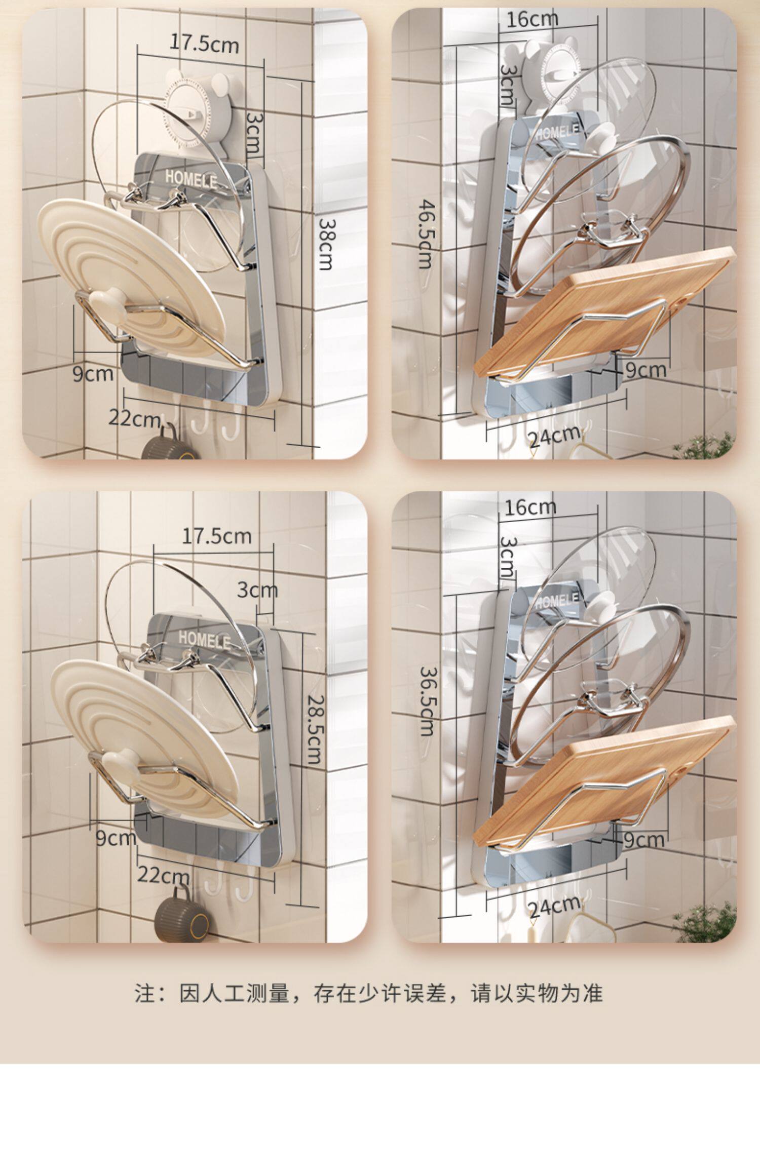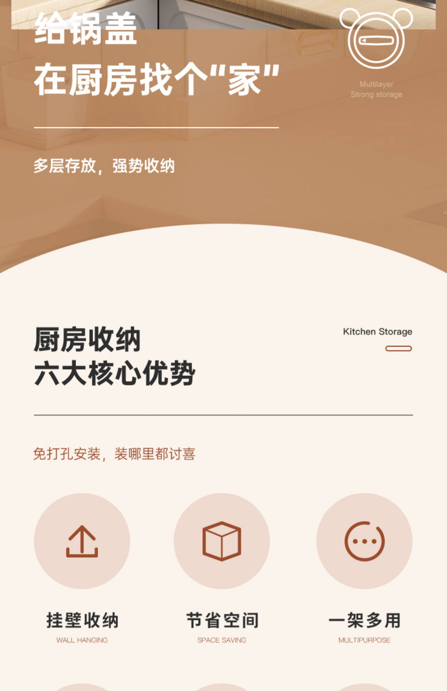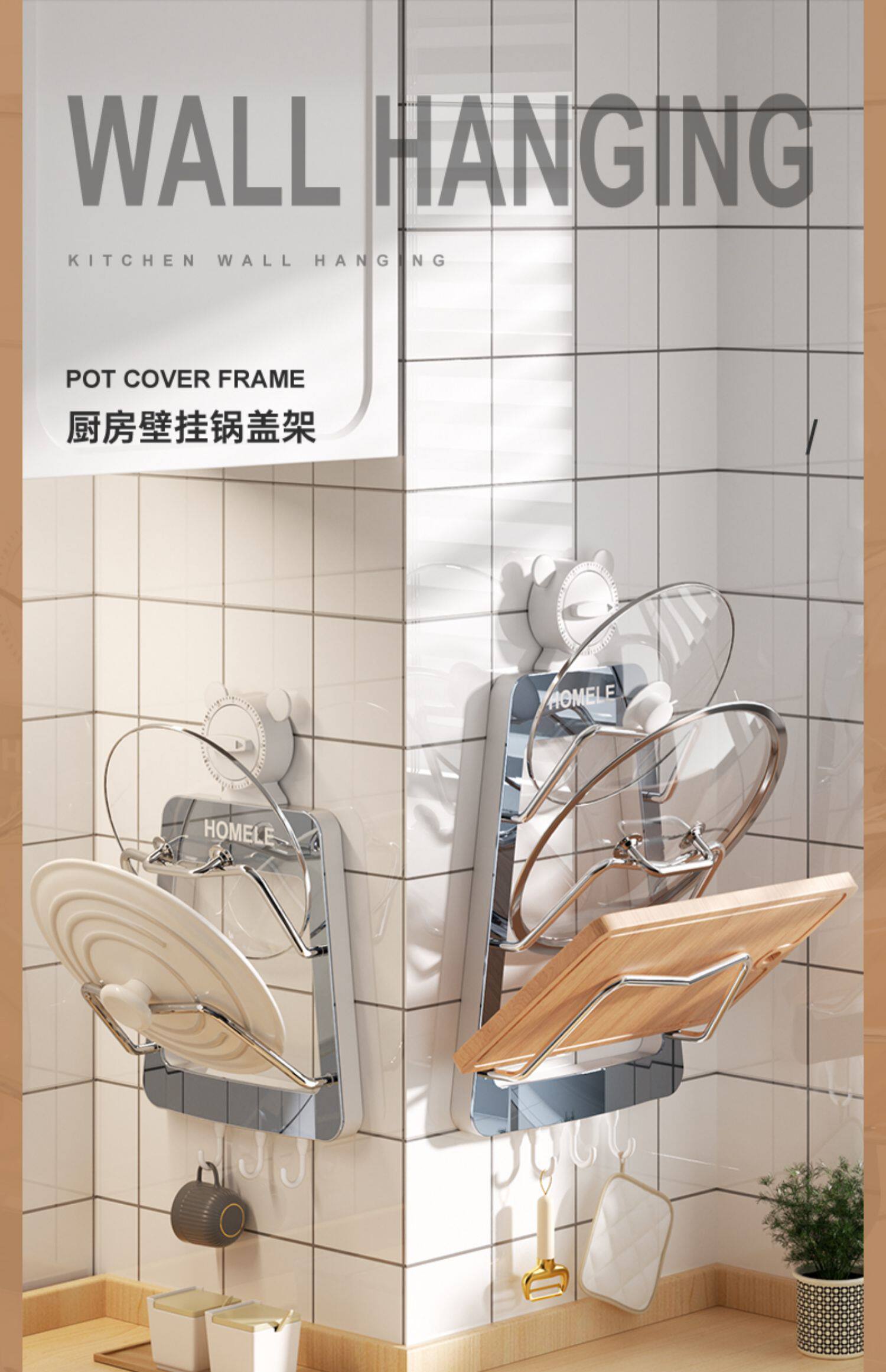 Полка для крышки кастрюли, настенная кухонная полка для хранения без перфорации, многофункциональная бытовая стойка для хранения, стойка для разделочной доски, многослойная стойка для разделочной доски
