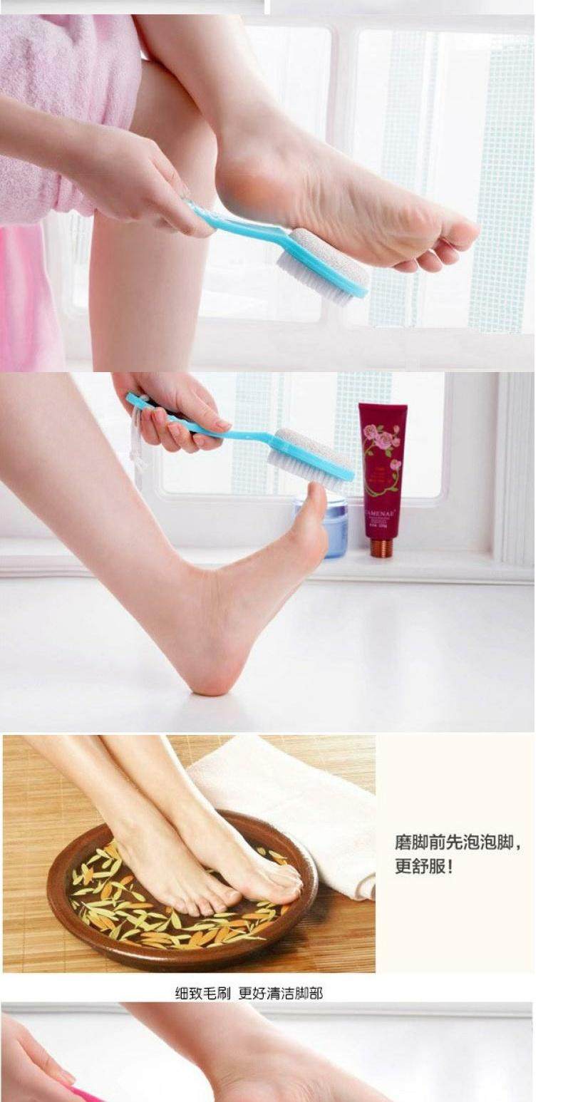 Потирая ноги обеими сторонами вулканического пепла и потирая ноги ногами, чтобы удалить дно ног и ногу стопы.