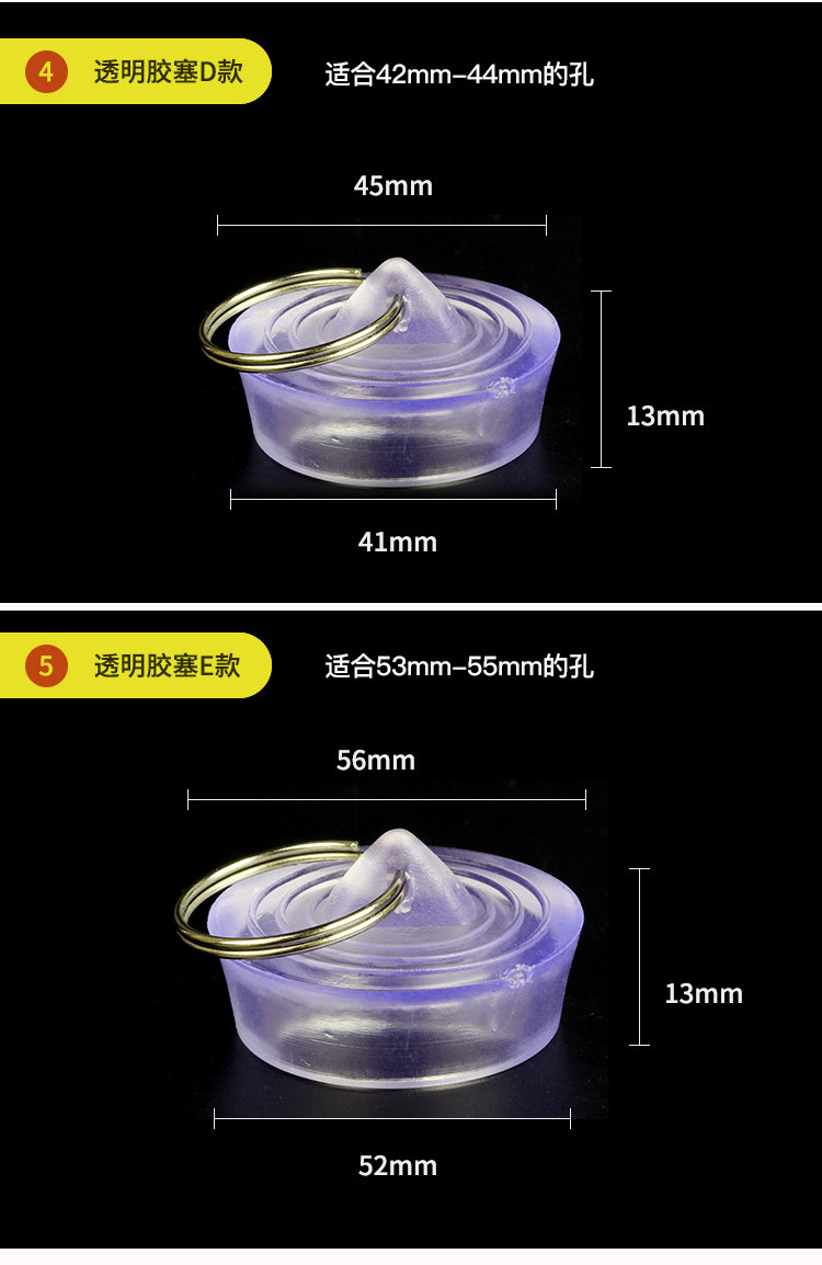 - Прозрачная модель резиновой заглушки D подходит для 42-44 мм отверстий
