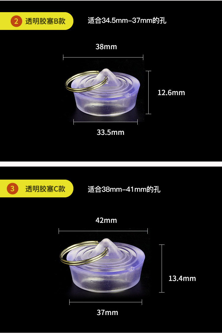 - Прозрачная резиновая заглушка C Модель подходит для отверстий 38-41 мм