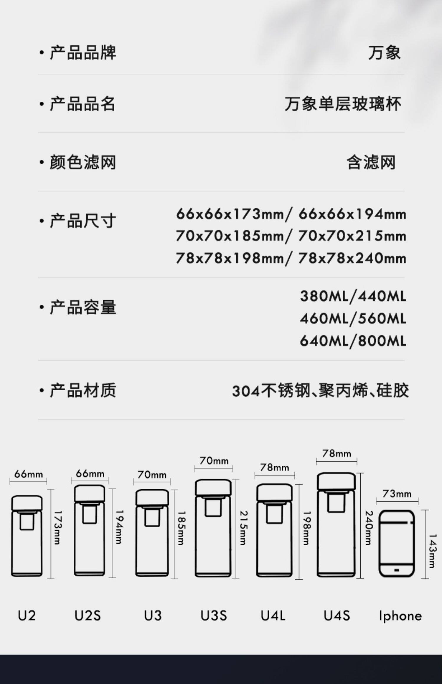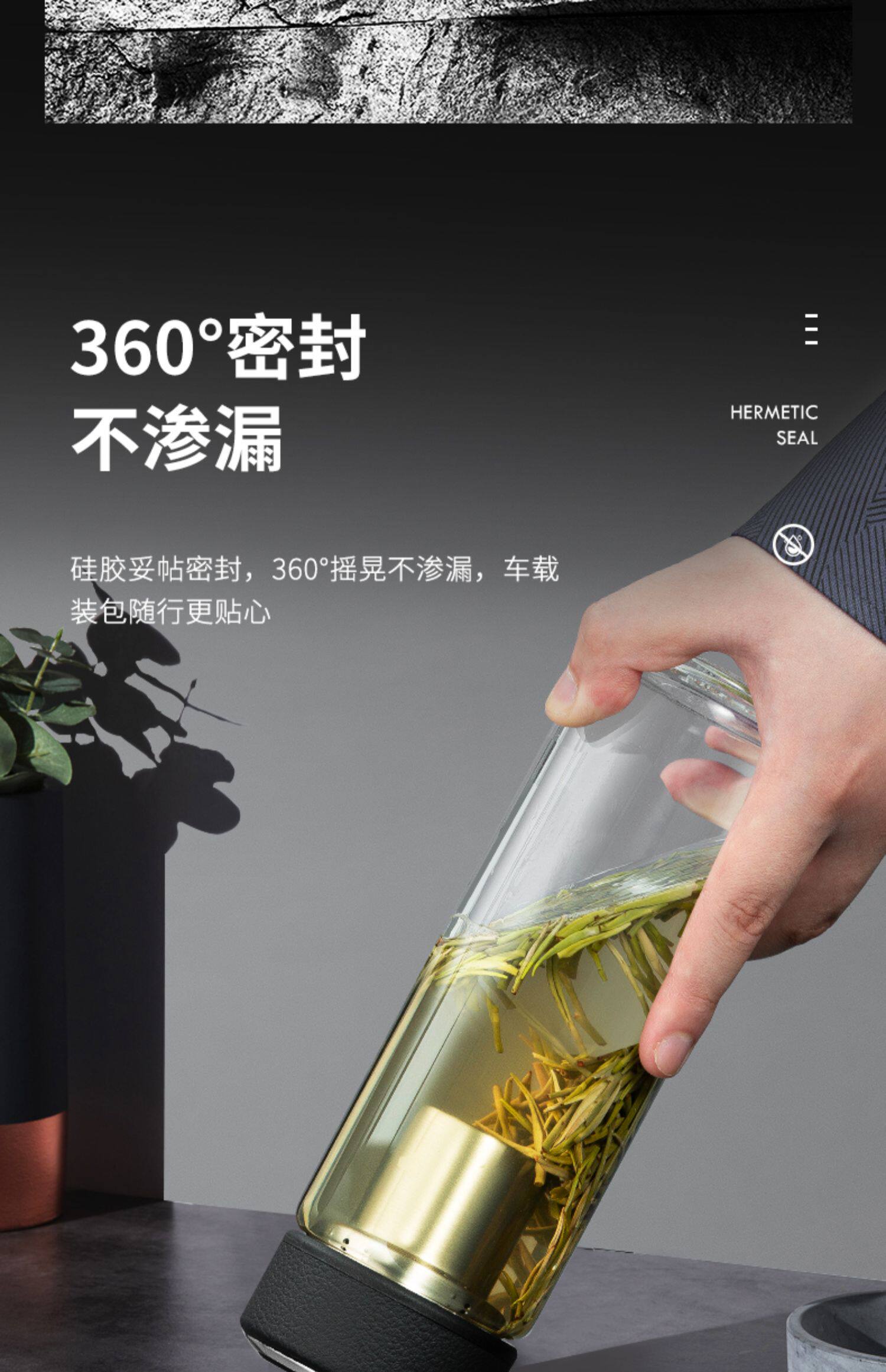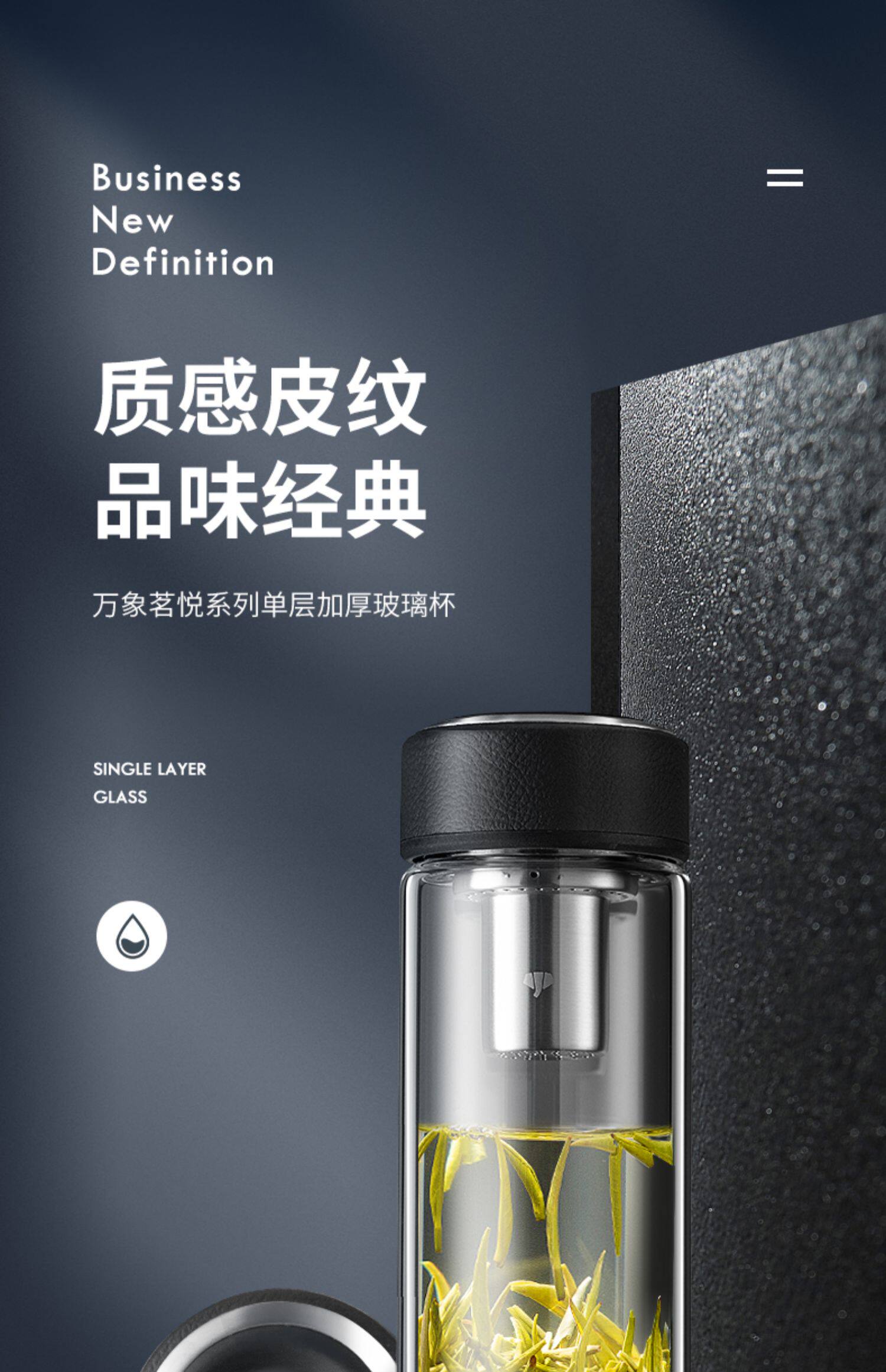 万象 Чай, мужская прозрачная вместительная и большая портативная стеклянная чайная чашка, простой и элегантный дизайн