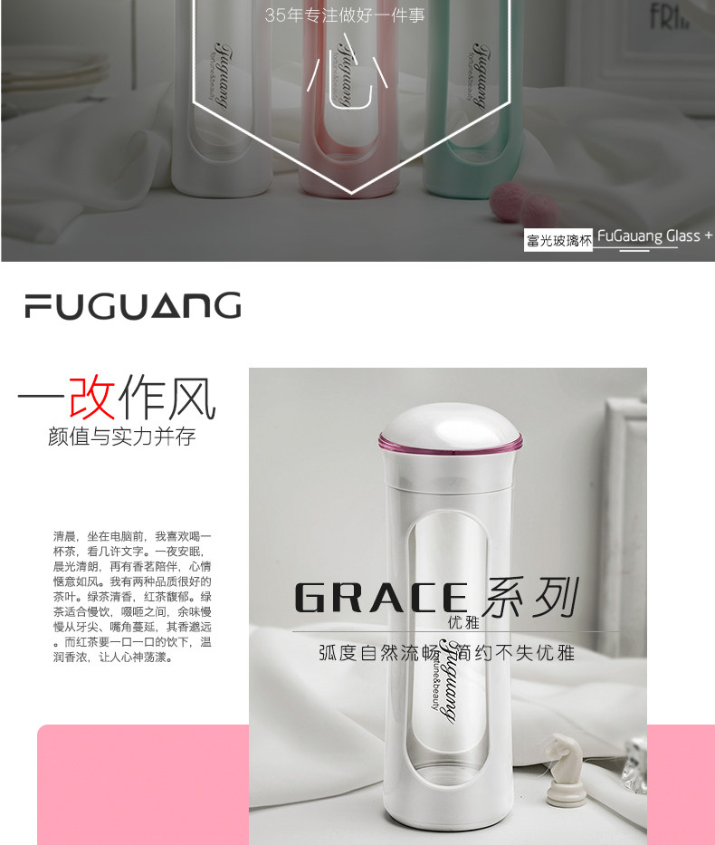 富光 Стеклянный модный креативный милый портативный ароматизированный чай, чайная чашка, фильтр, простой и элегантный дизайн