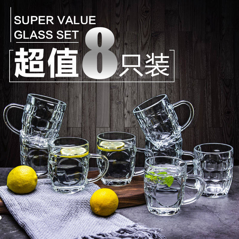 [8 установок] Стеклянная чашка набор домашней чашки водяной чашки пить чайную чашку сока молока чашка с чашкой пивных стаканов