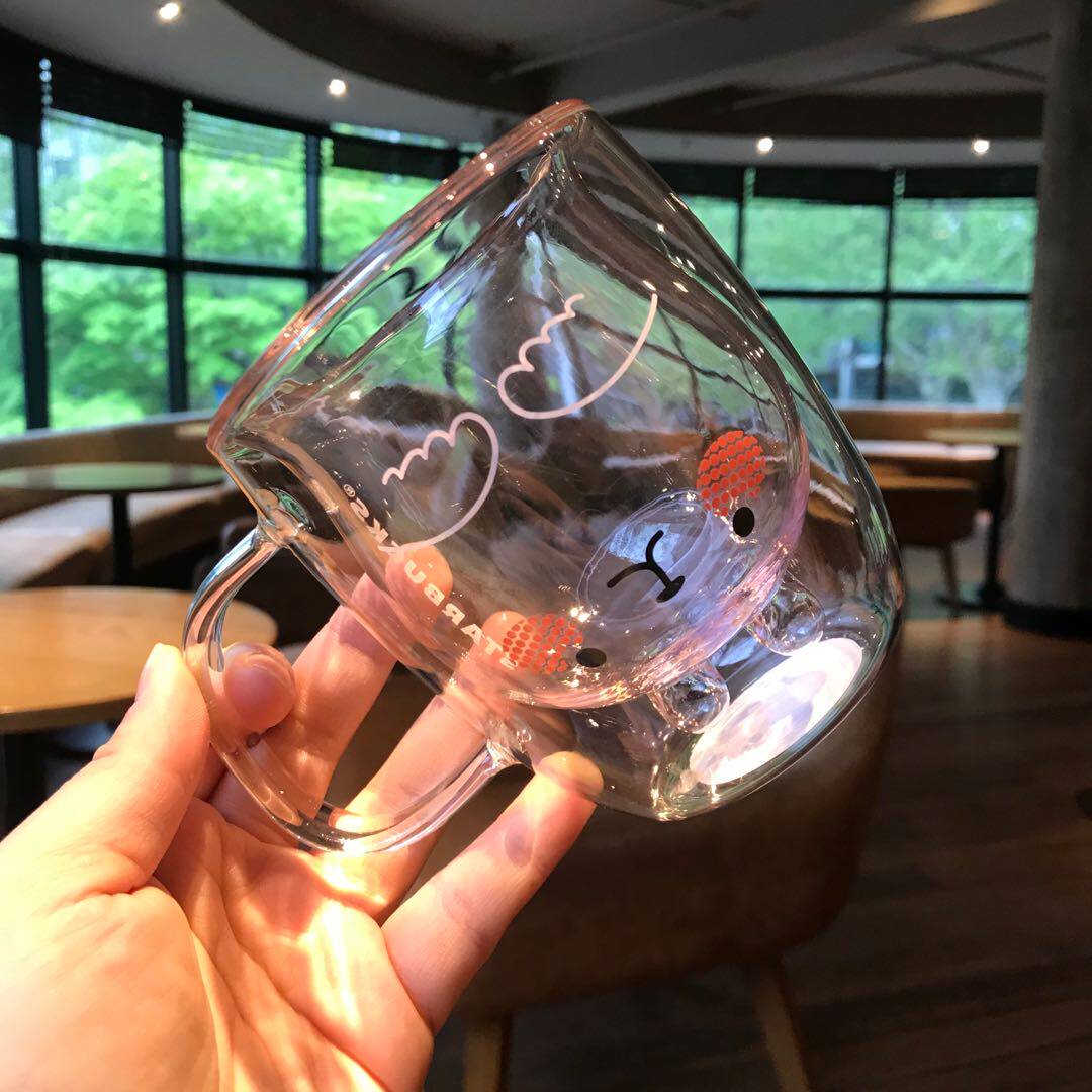 Starbucks, мультяшный милый розовый двухэтажный кролик для ушей, стеклянная кофейная ручка со стаканом