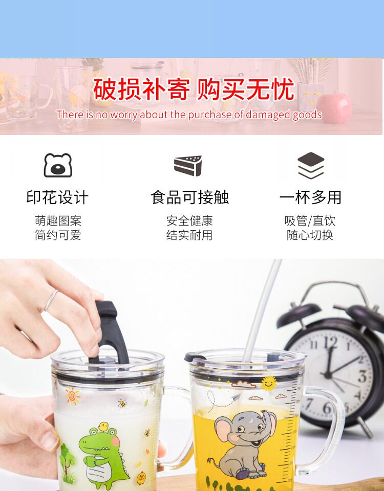 Стеклянная детская милая кофейная трубочка для домашнего использования со стаканом, чайная чашка