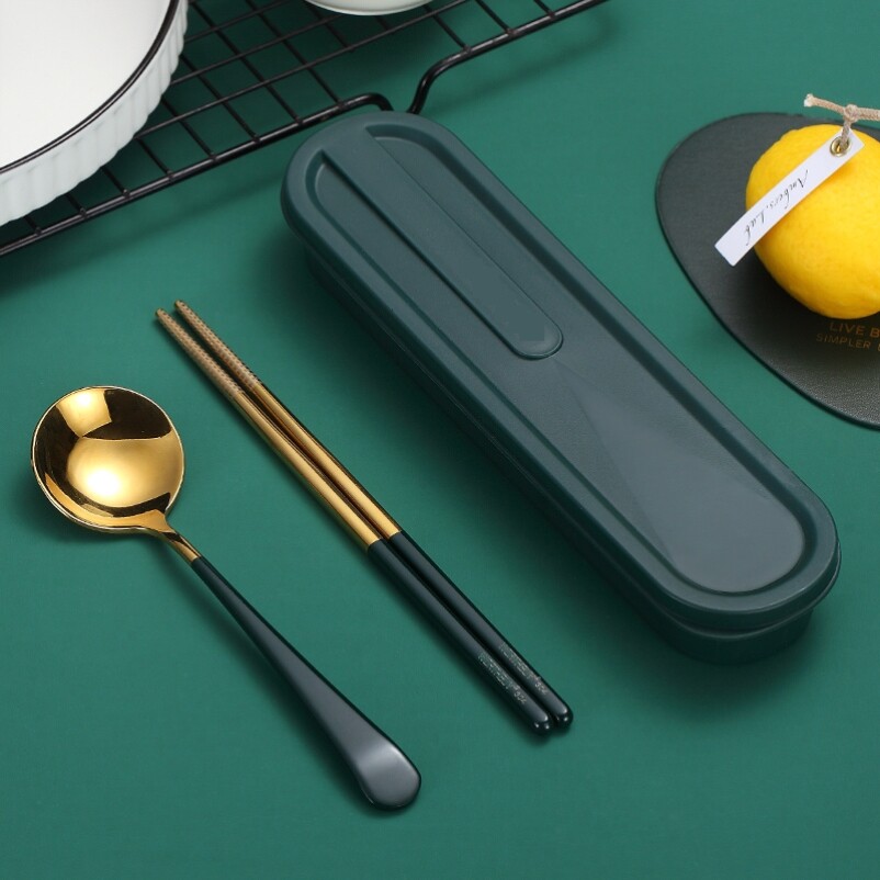 Палочки для еды, ложка, комплект для школьников и студентов, корейская коробка для взрослых из нержавеющей стали, портативная детская посуда