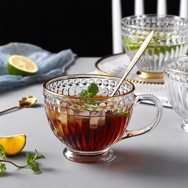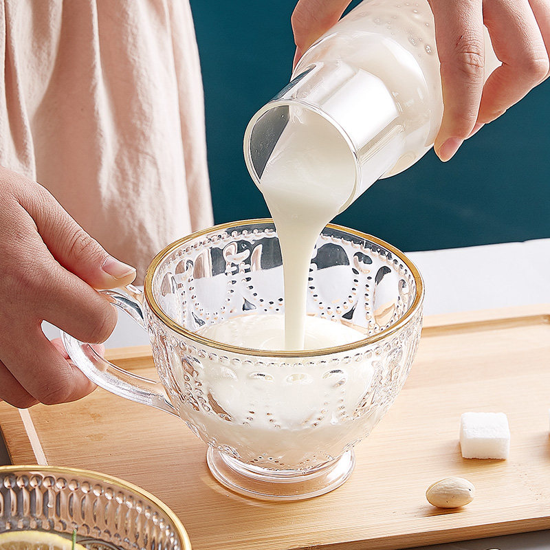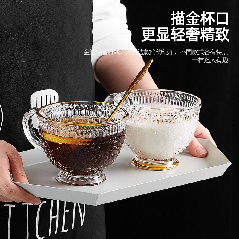 Phnom Penh's Relief Glass Cup Oatmeal Breakfast Water Cup Cup Cup Mite и Simple с ложкой домохозяйства с молоком.
