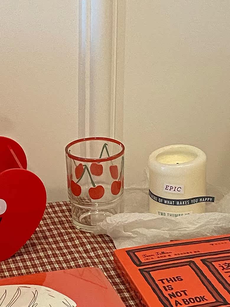 Mingming Store Retro Red Cherry Cup Cup Mite Ins в стиле стиля французской девушки Heart Water Cup Milk Cup