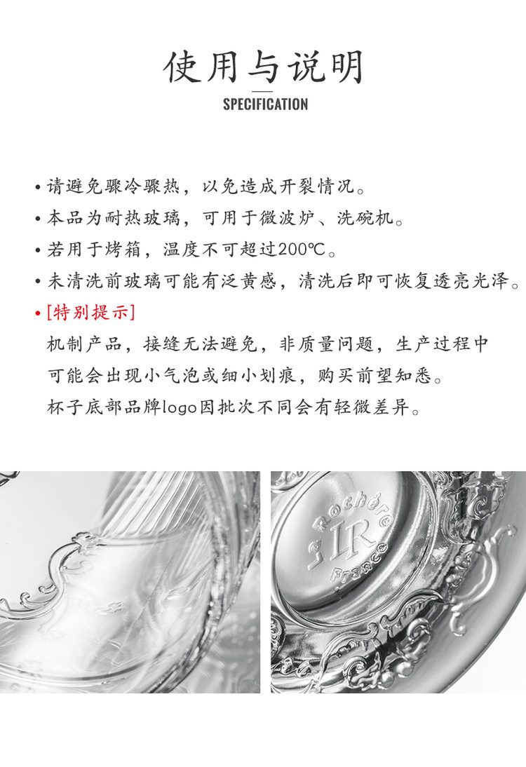 Франция импортирована La Rochère European -Style Широкий состязание со стороны свинца без стеклянного стеклянного напитка чашка короткая чашка
