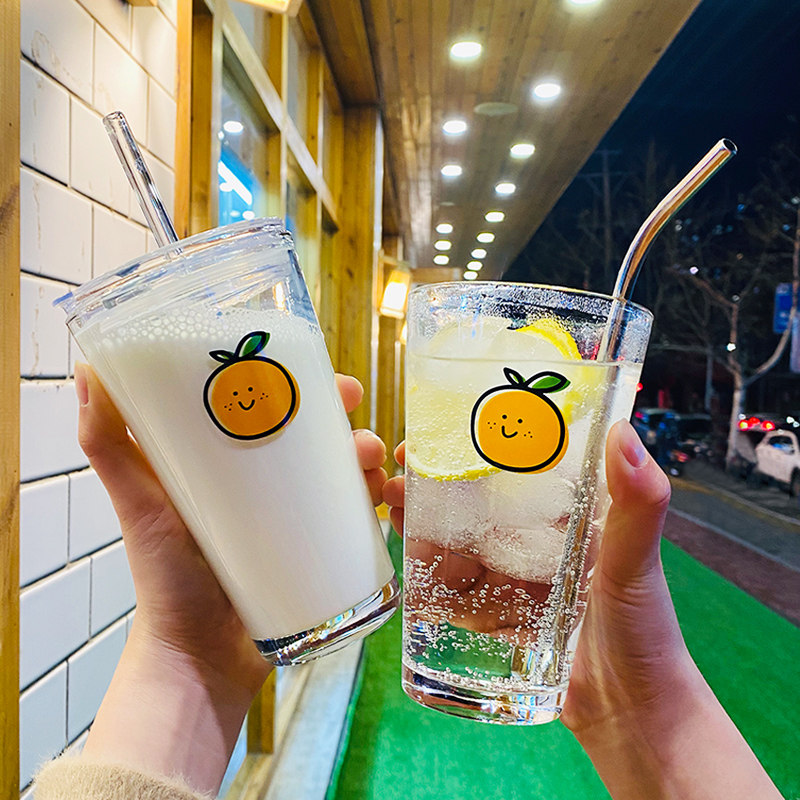 Простая креативная апельсиновая стеклянная стеклянная чашка вода, симпатичная с застоя фруктового сока, молоко, чай, прозрачный дом, используйте теплостойкость, высокая ценность