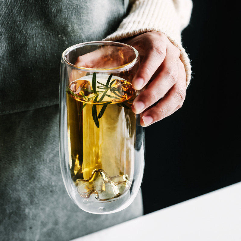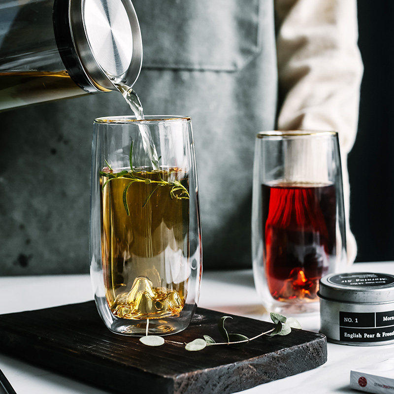 Исправленное стекло прозрачное двойное чашка с зеленой чашкой чай