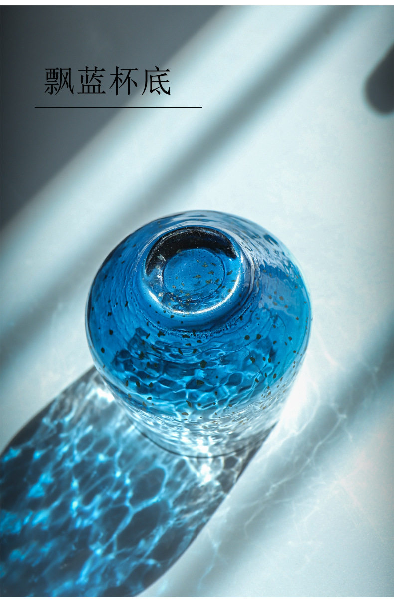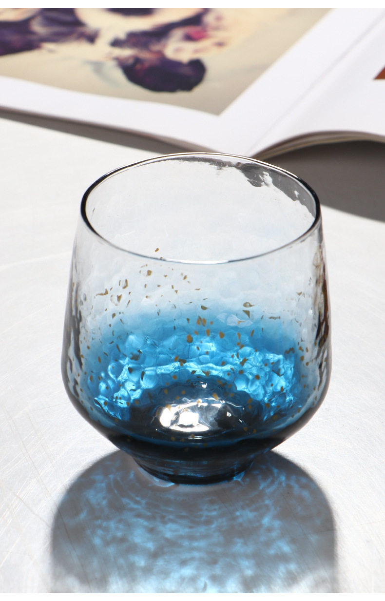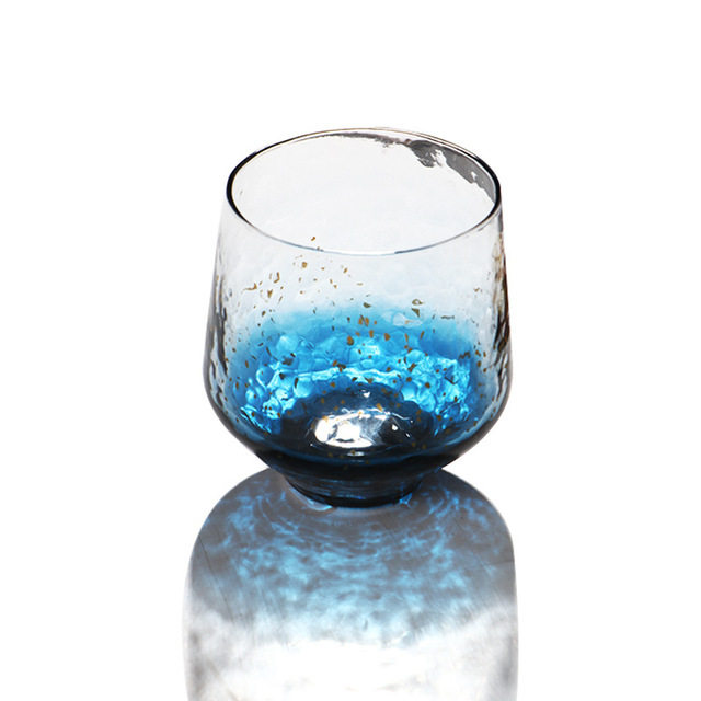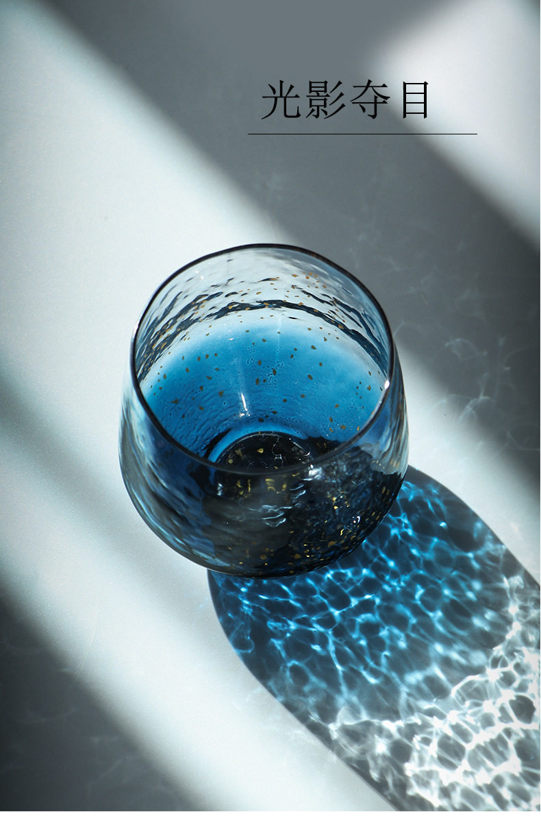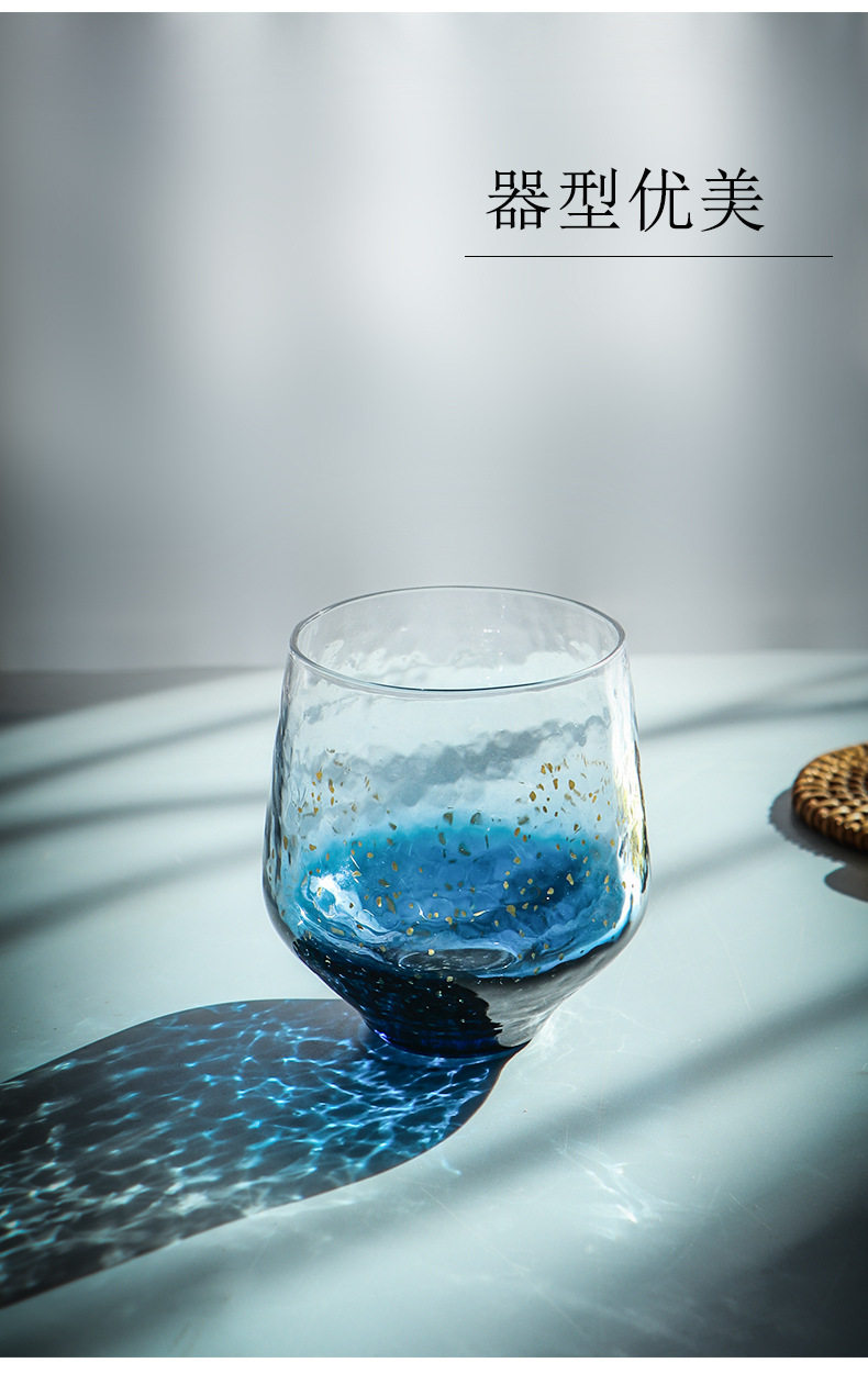 Японская синяя стеклянная чайная чашка, стакан, золотое звездное небо для виски