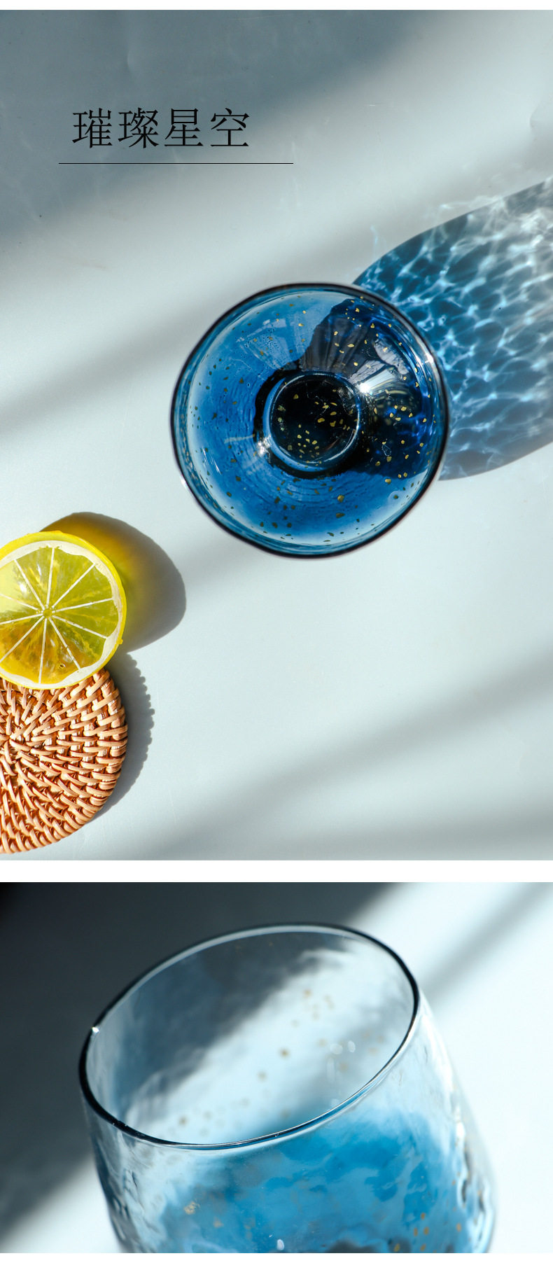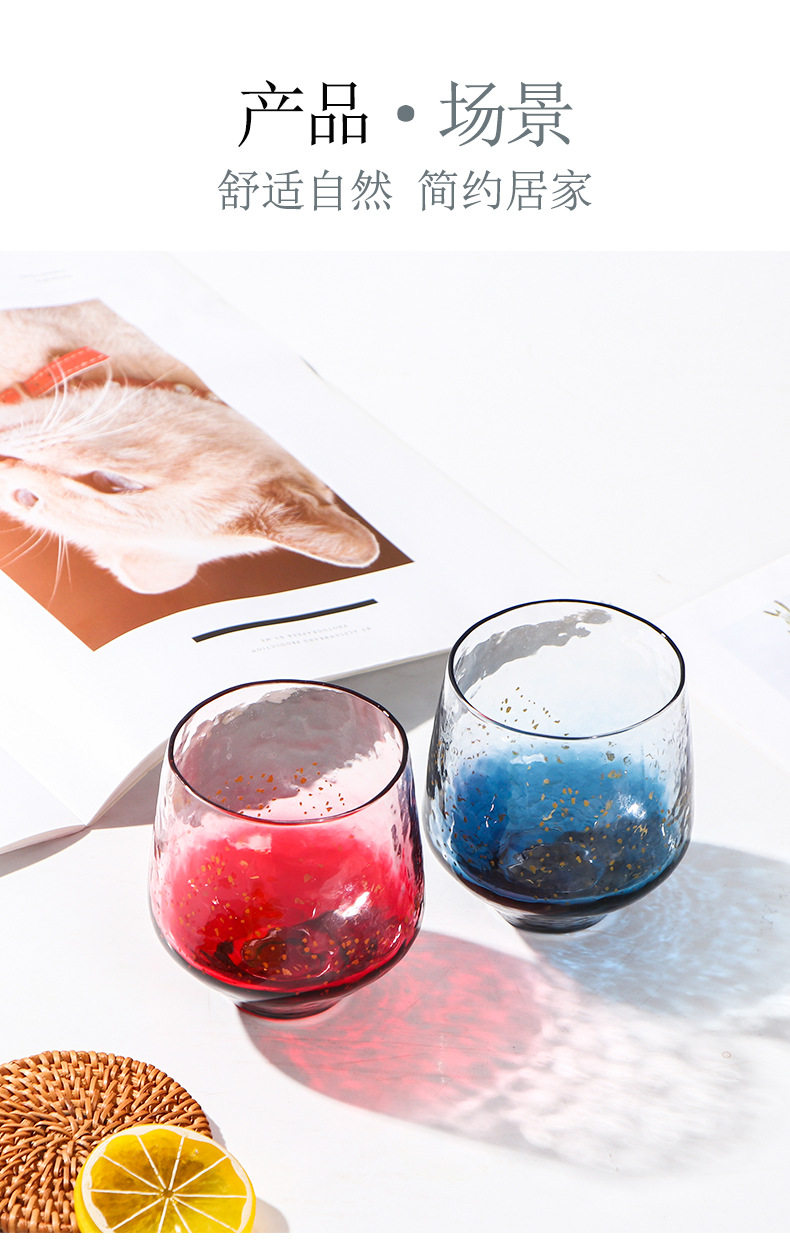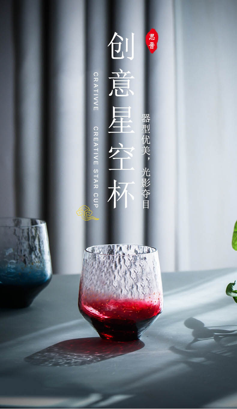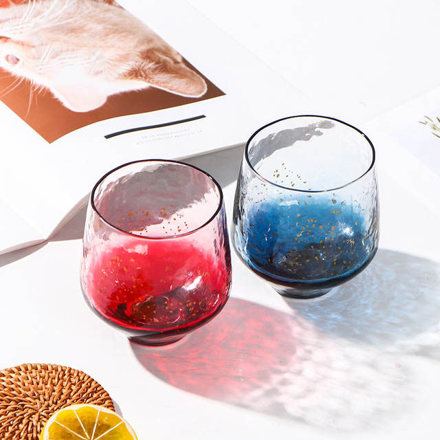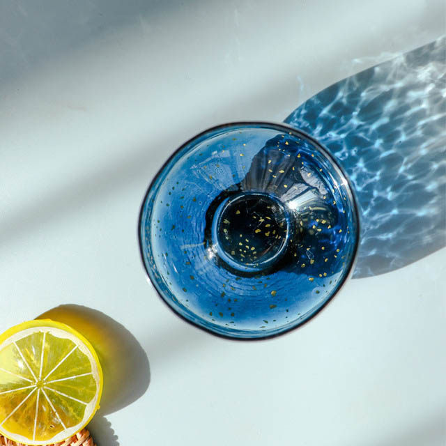 Японская синяя стеклянная чайная чашка, стакан, золотое звездное небо для виски
