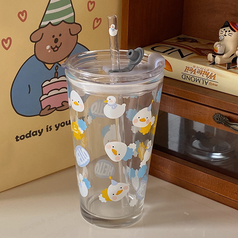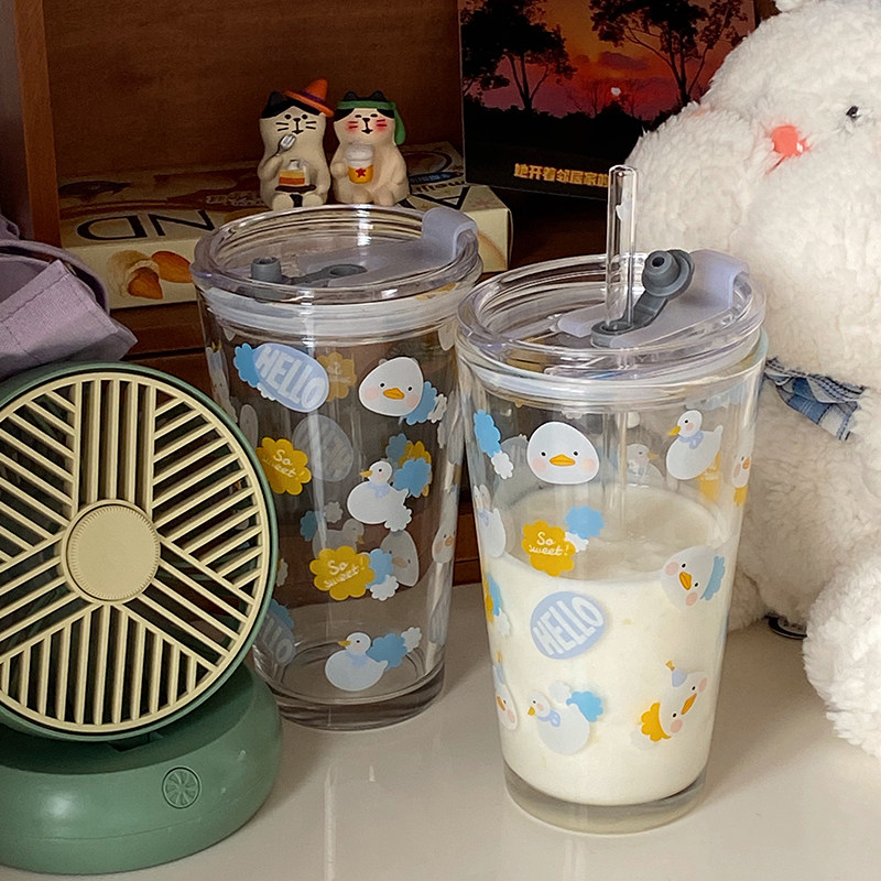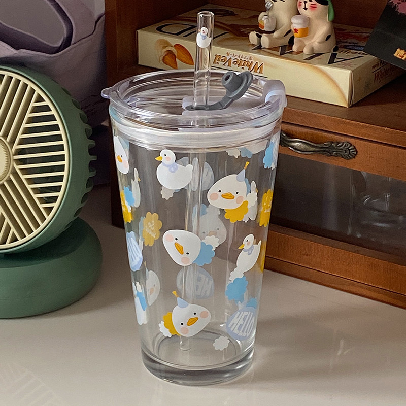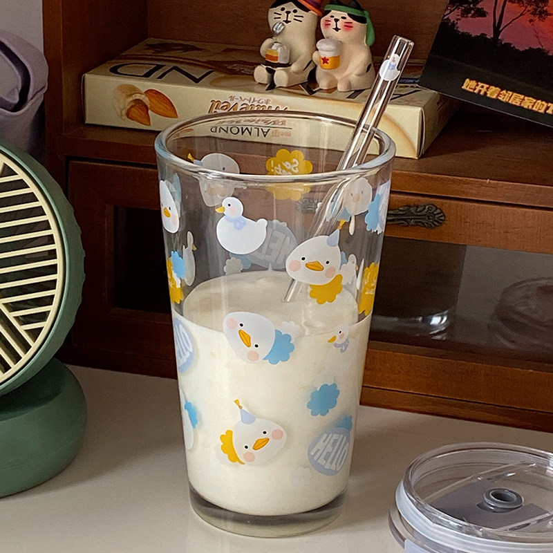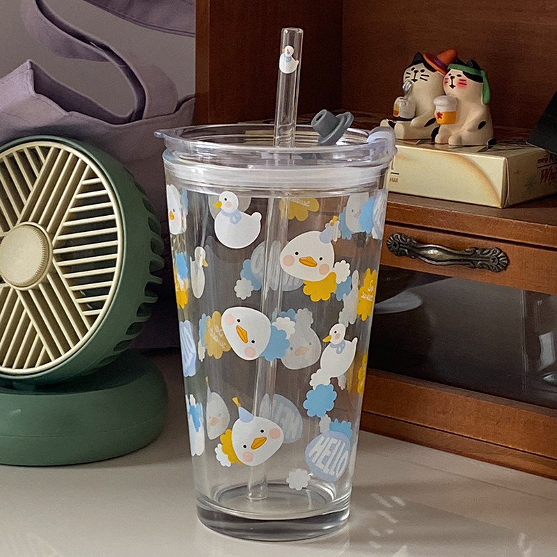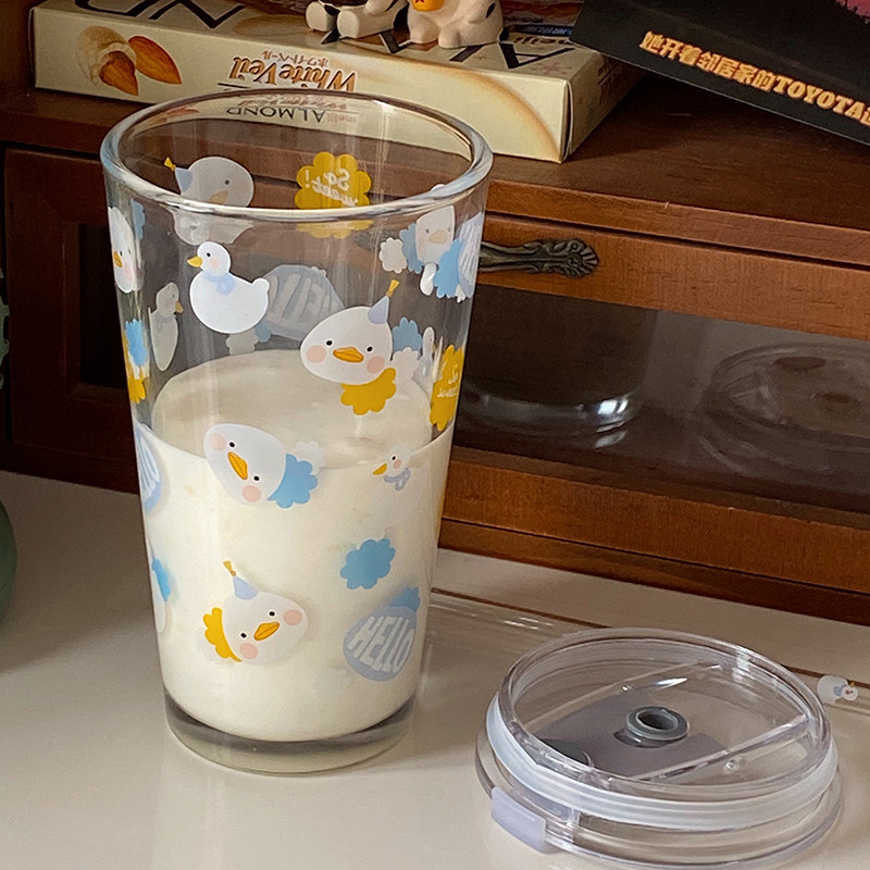 Милый стеклянный летний стакан для школьников со стаканом
