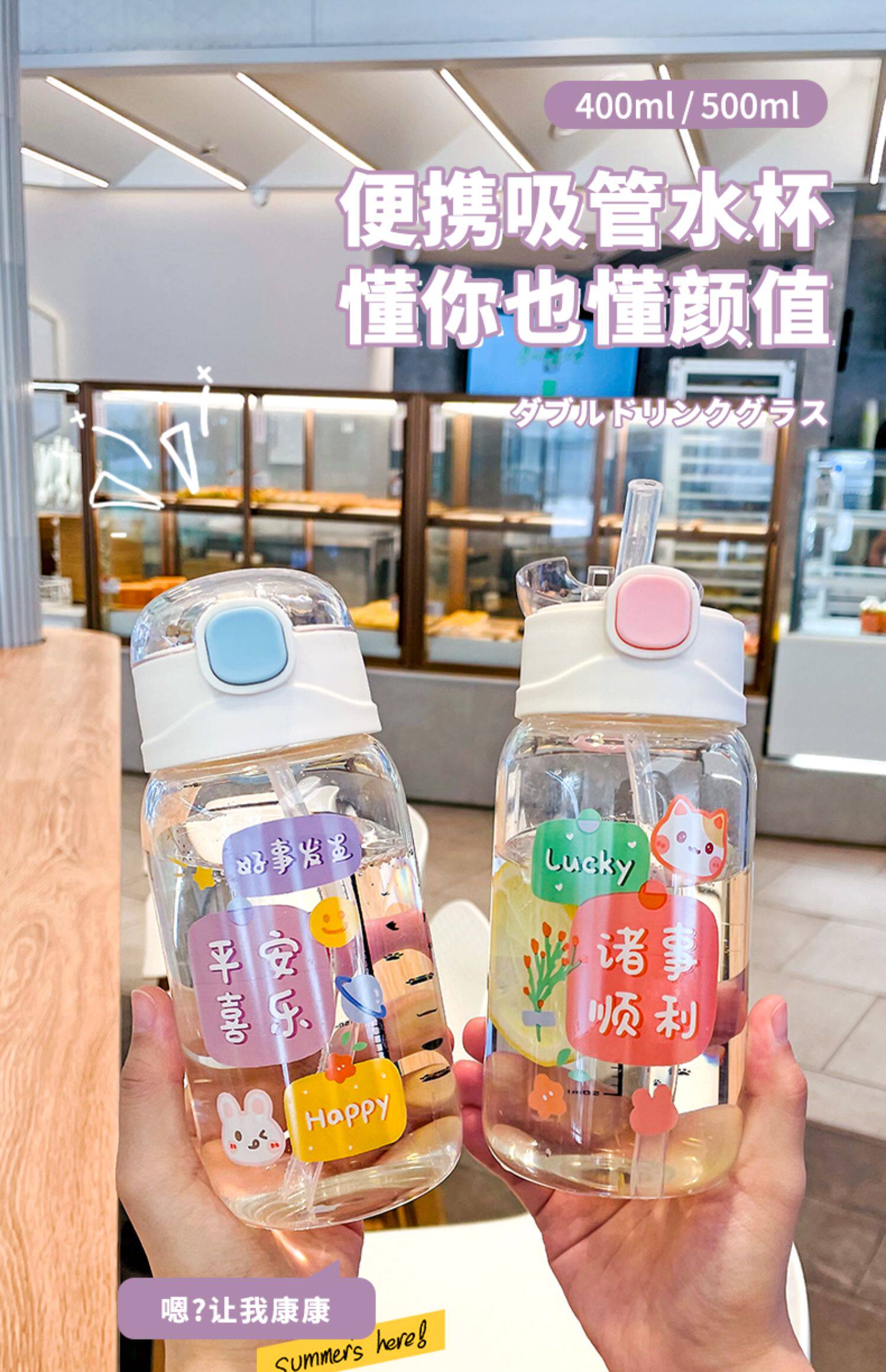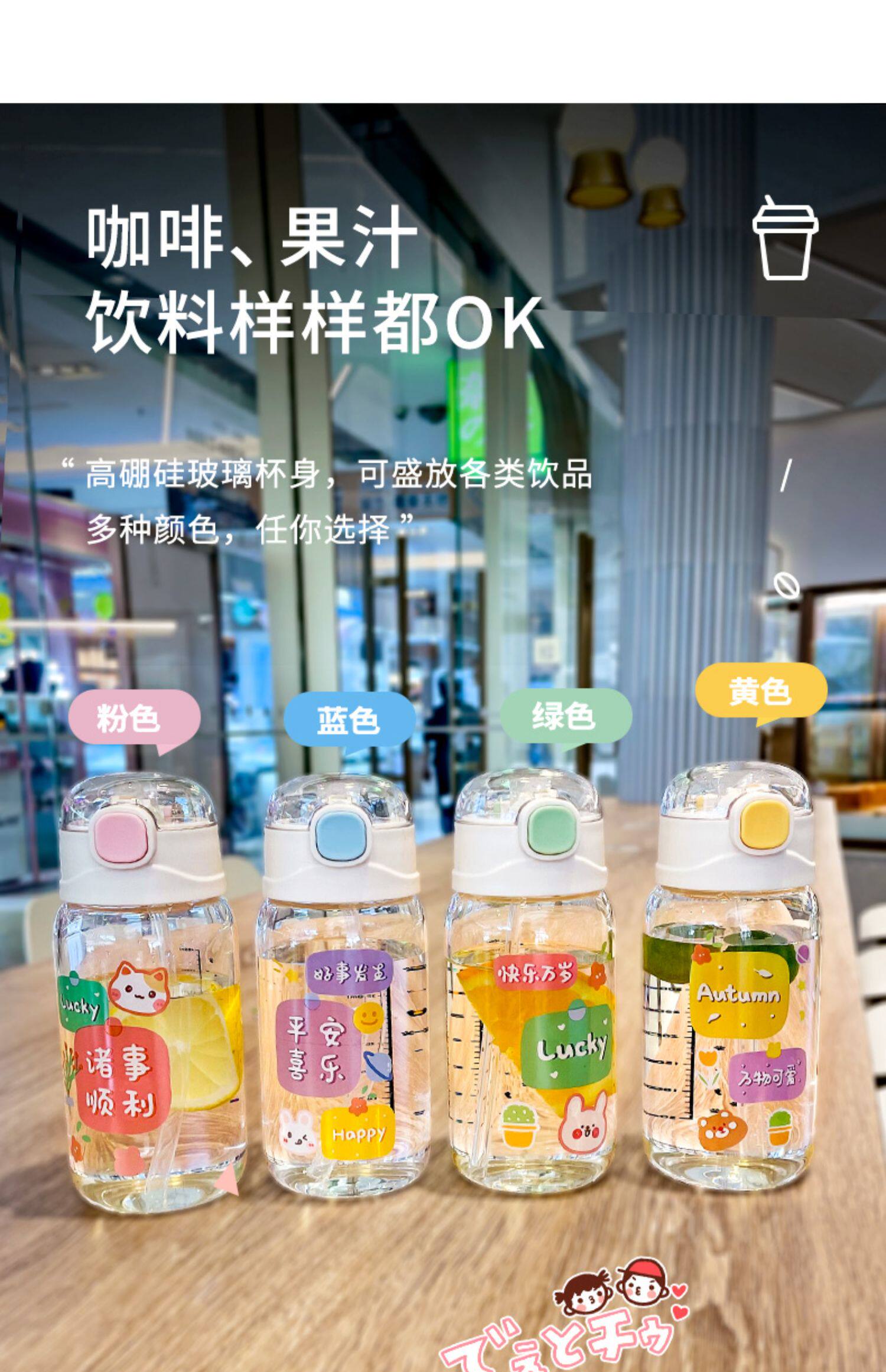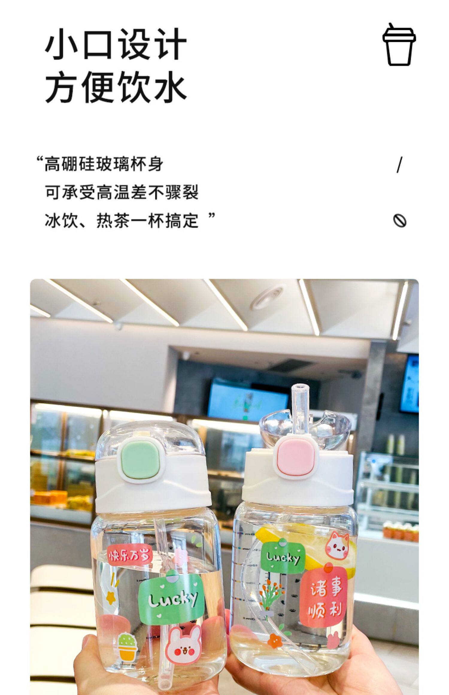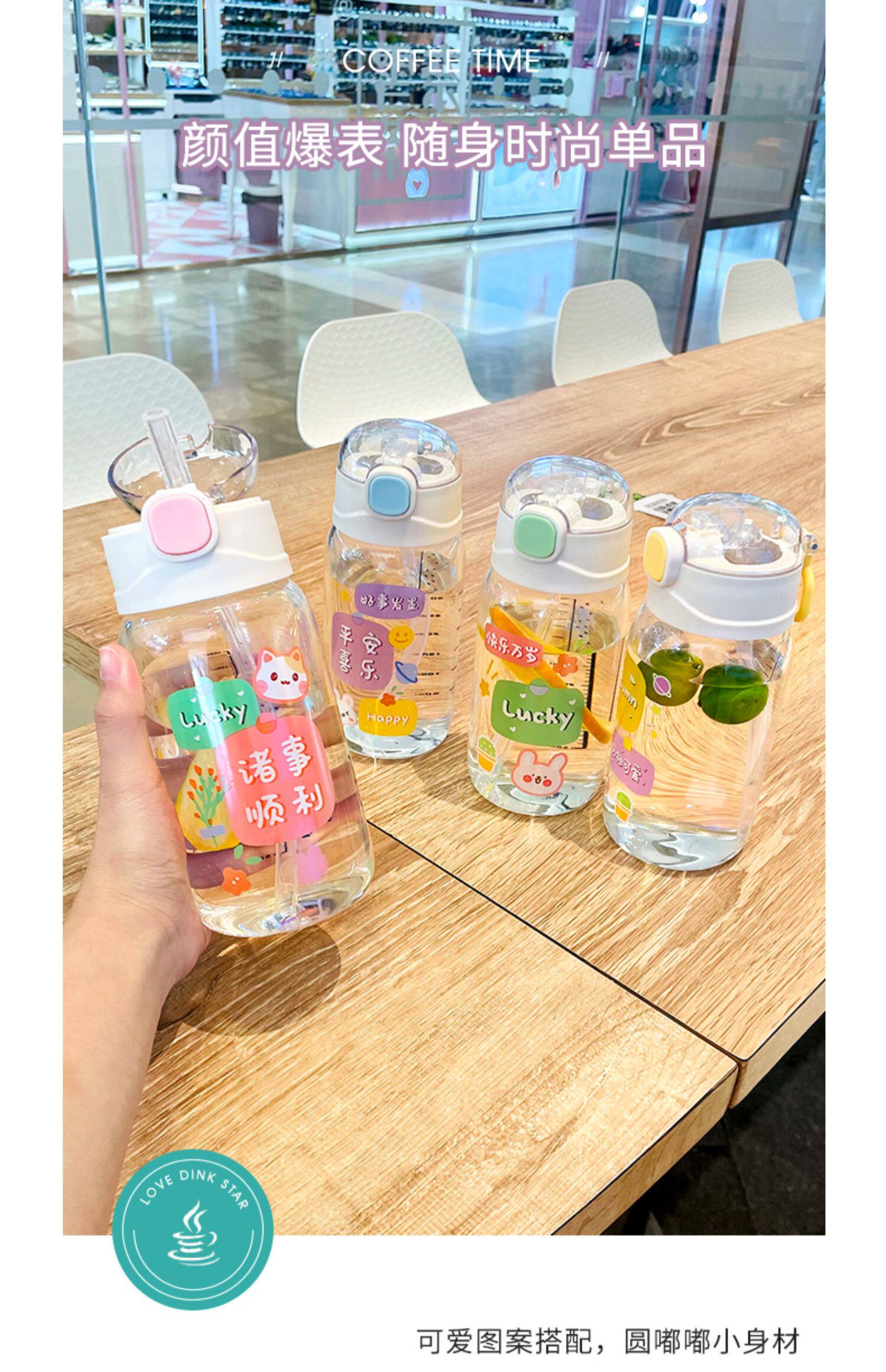 Летняя портативная переносная стеклянная милая детская трубочка со стаканом, высококачественная чайная чашка, популярно в интернете, защита при падении