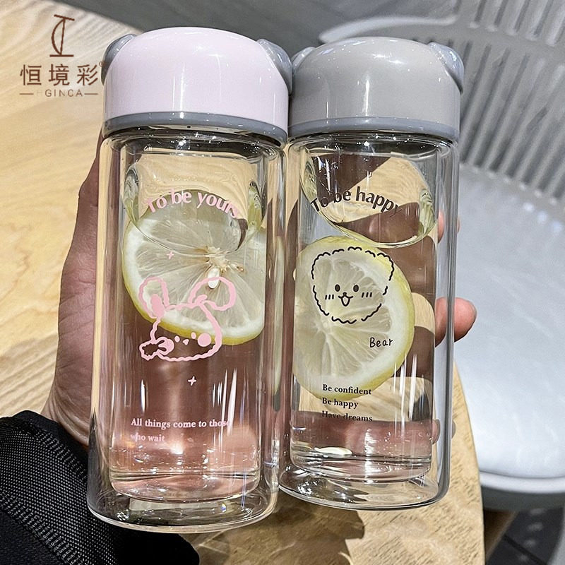 Двойной теплоизоляционный стеклянный стекло простое корейское корейское пресноводное чашка женского леса Симпатичная высокотемпературная чашка с высокой температурой, устойчивая к высоко температуре