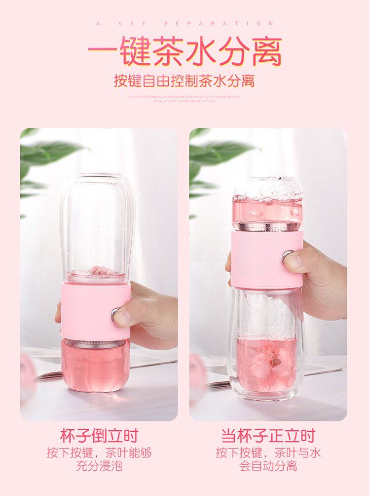 Чай отделен от чайной чашки двойной слой стеклянных дам портативная творческая фильтрация питья чашка кошачья кошачья цветочная чашка.