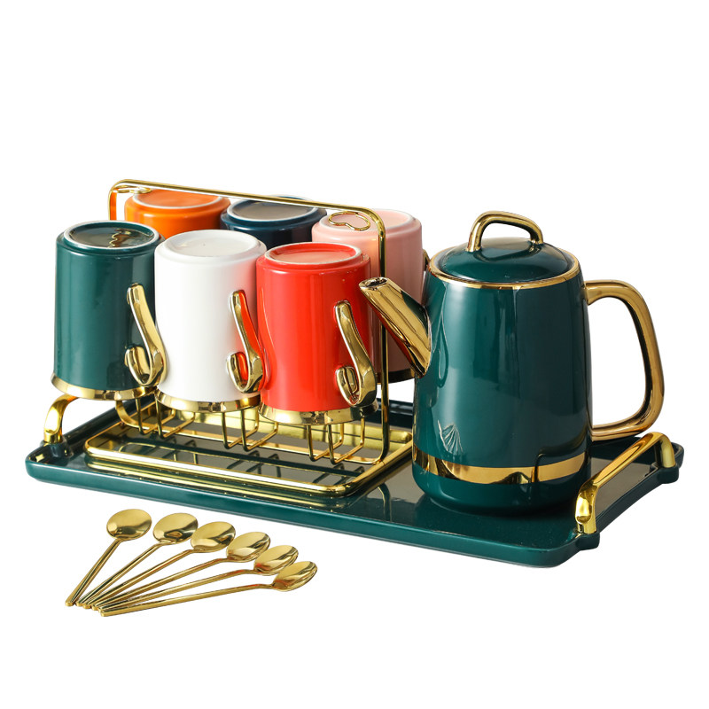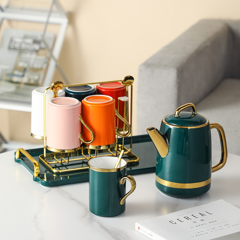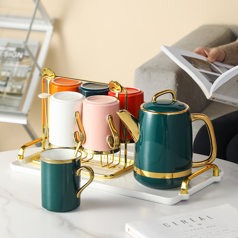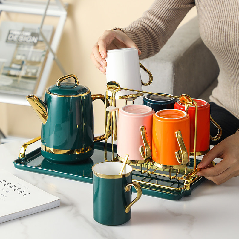Комплект, керамическая чайная чашка для гостиной, изысканный стиль, легкий роскошный стиль