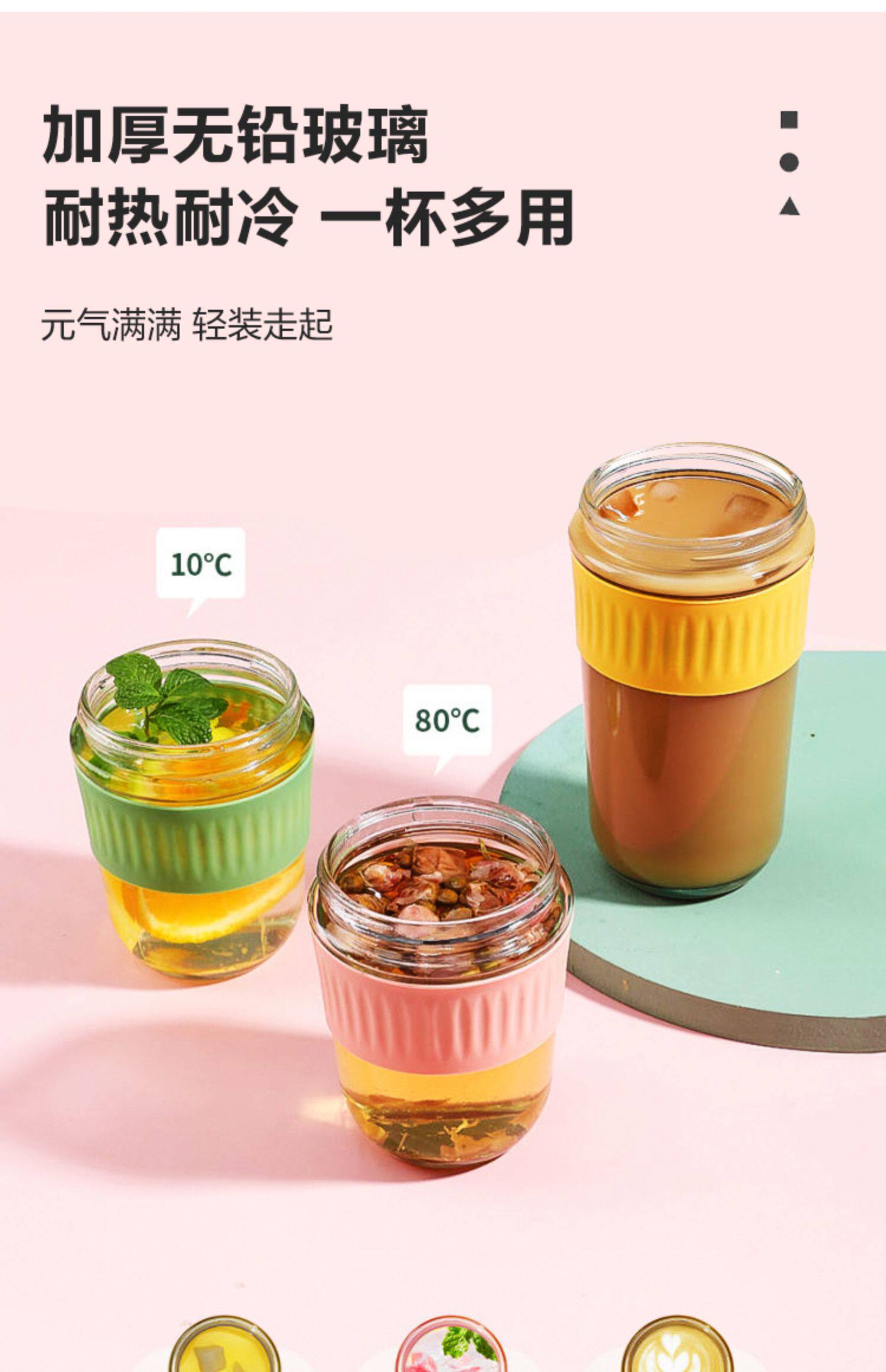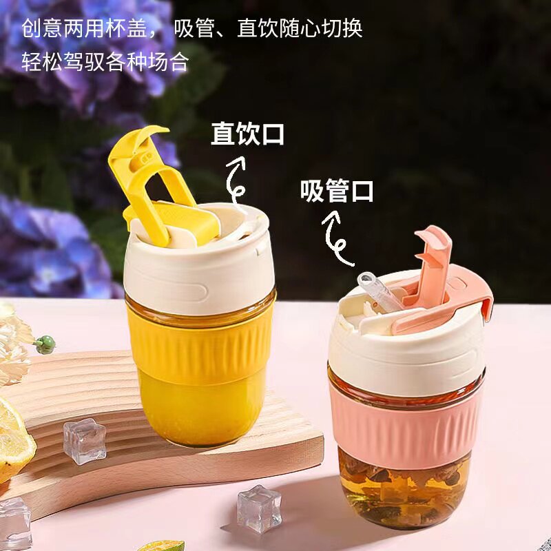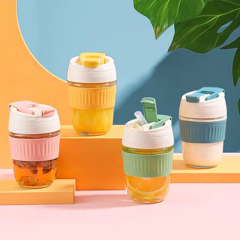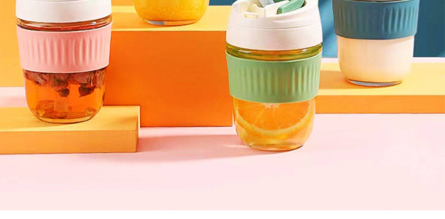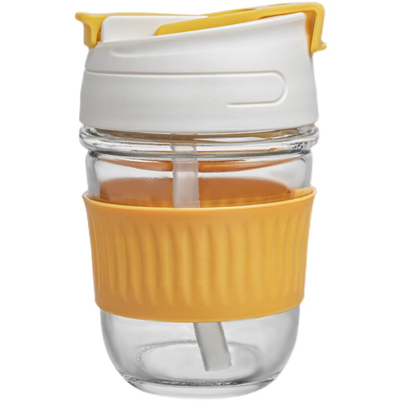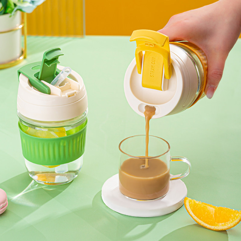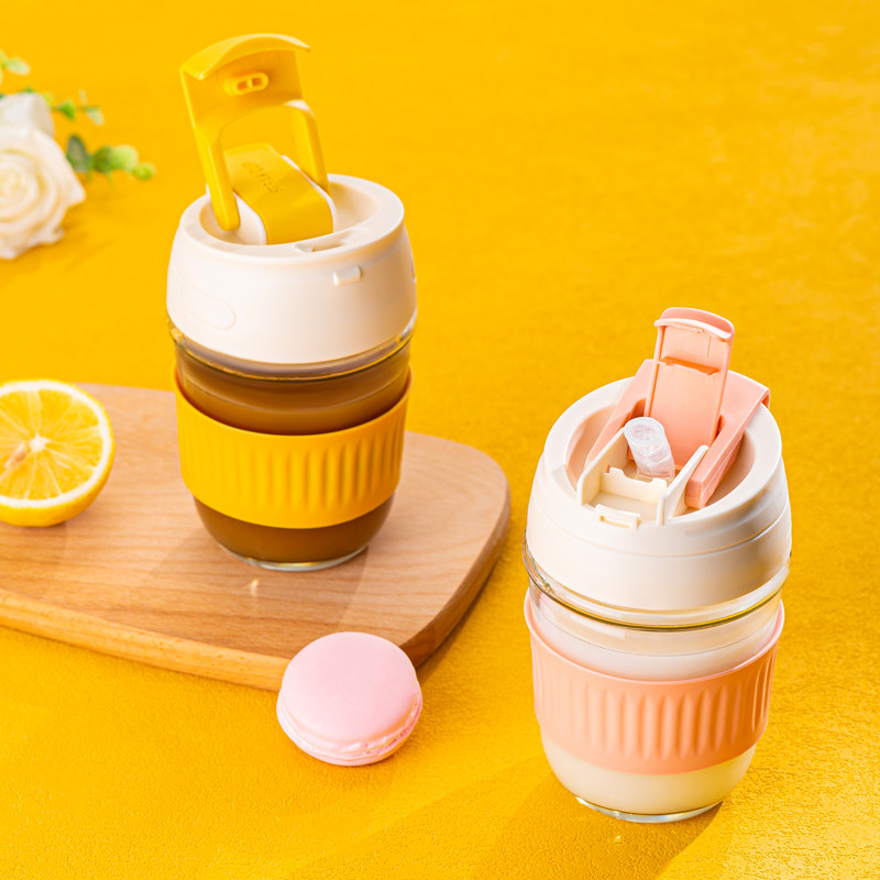 Стеклянный портативный милый кофейный стакан со стаканом