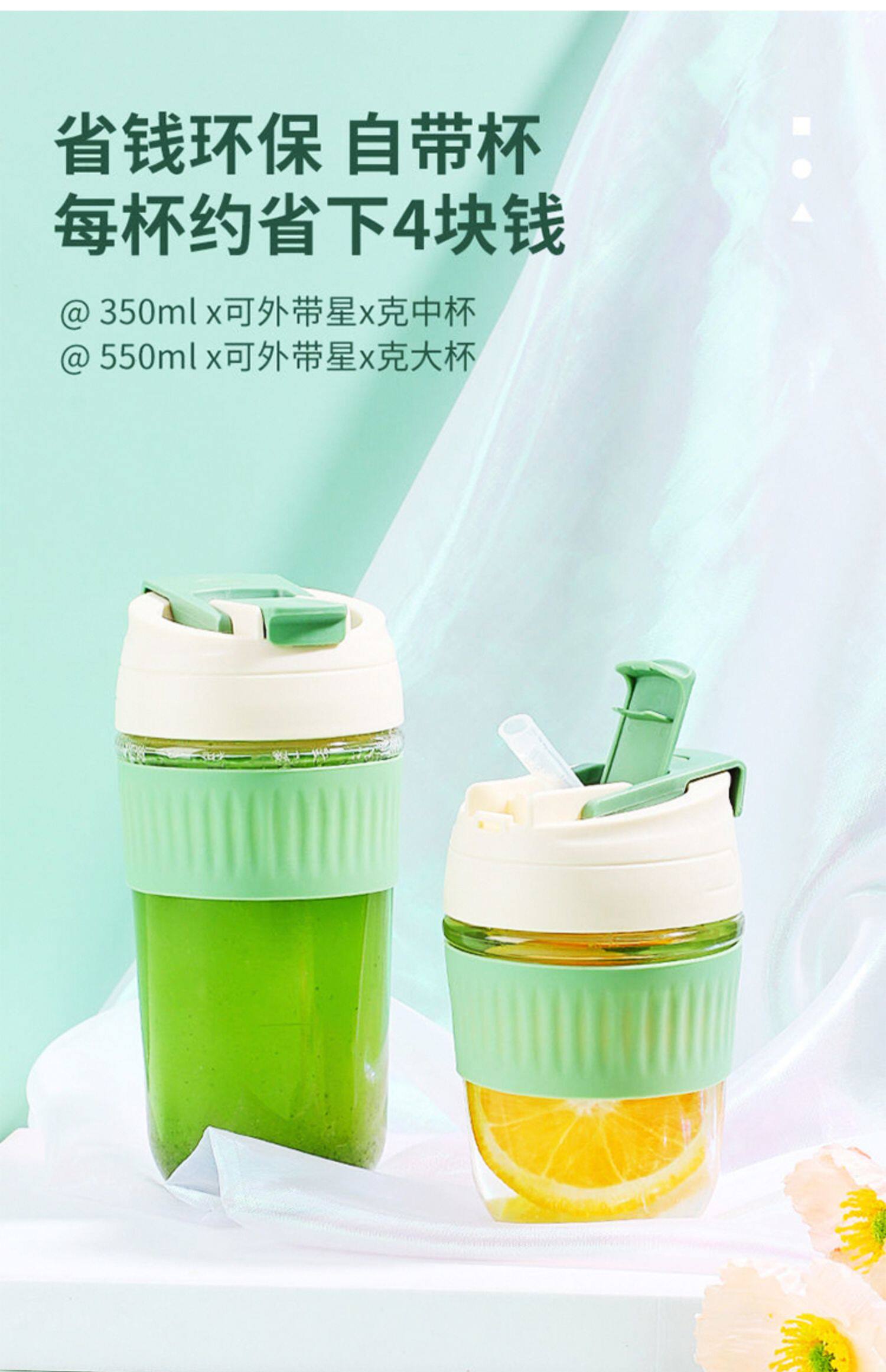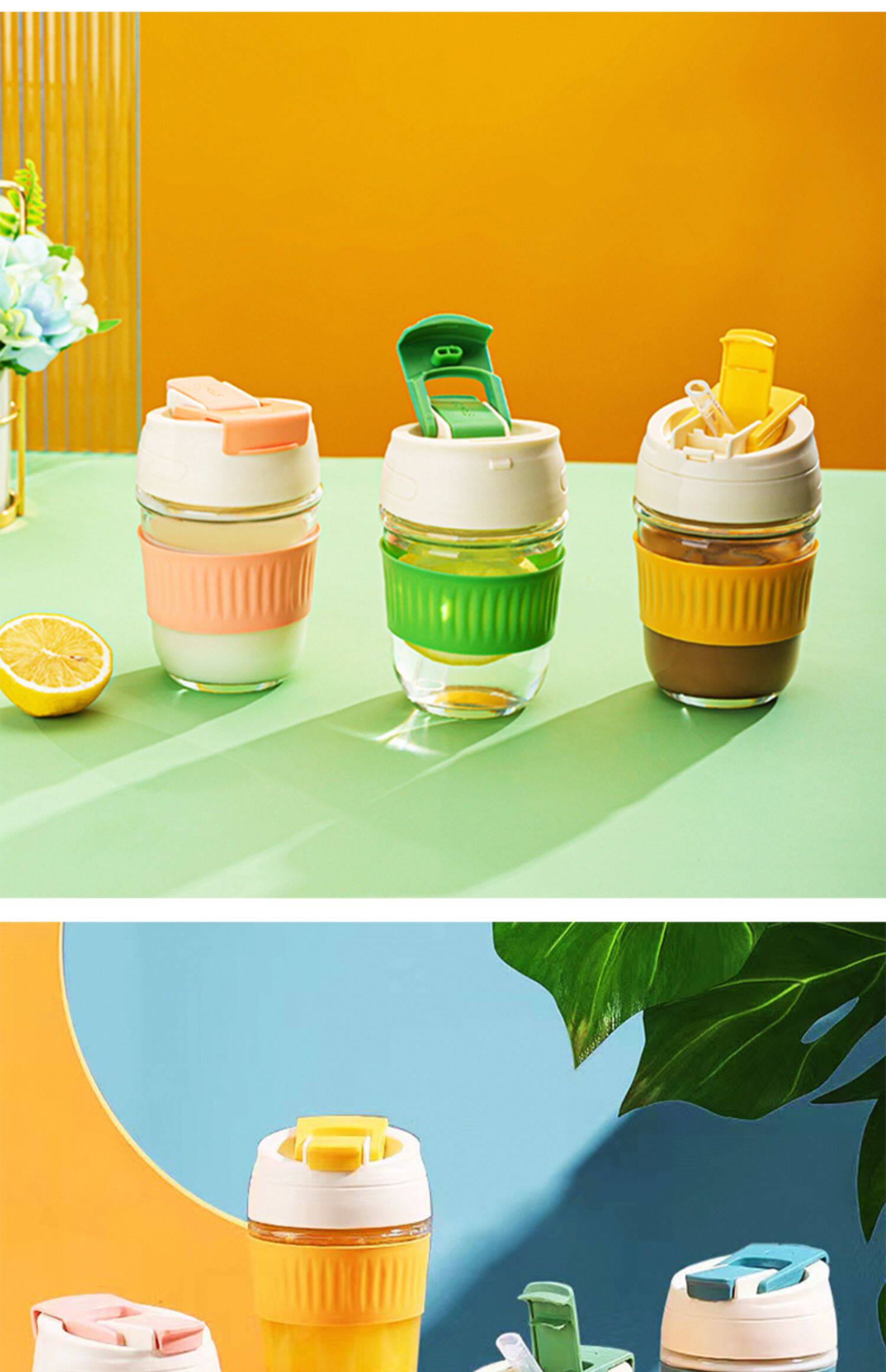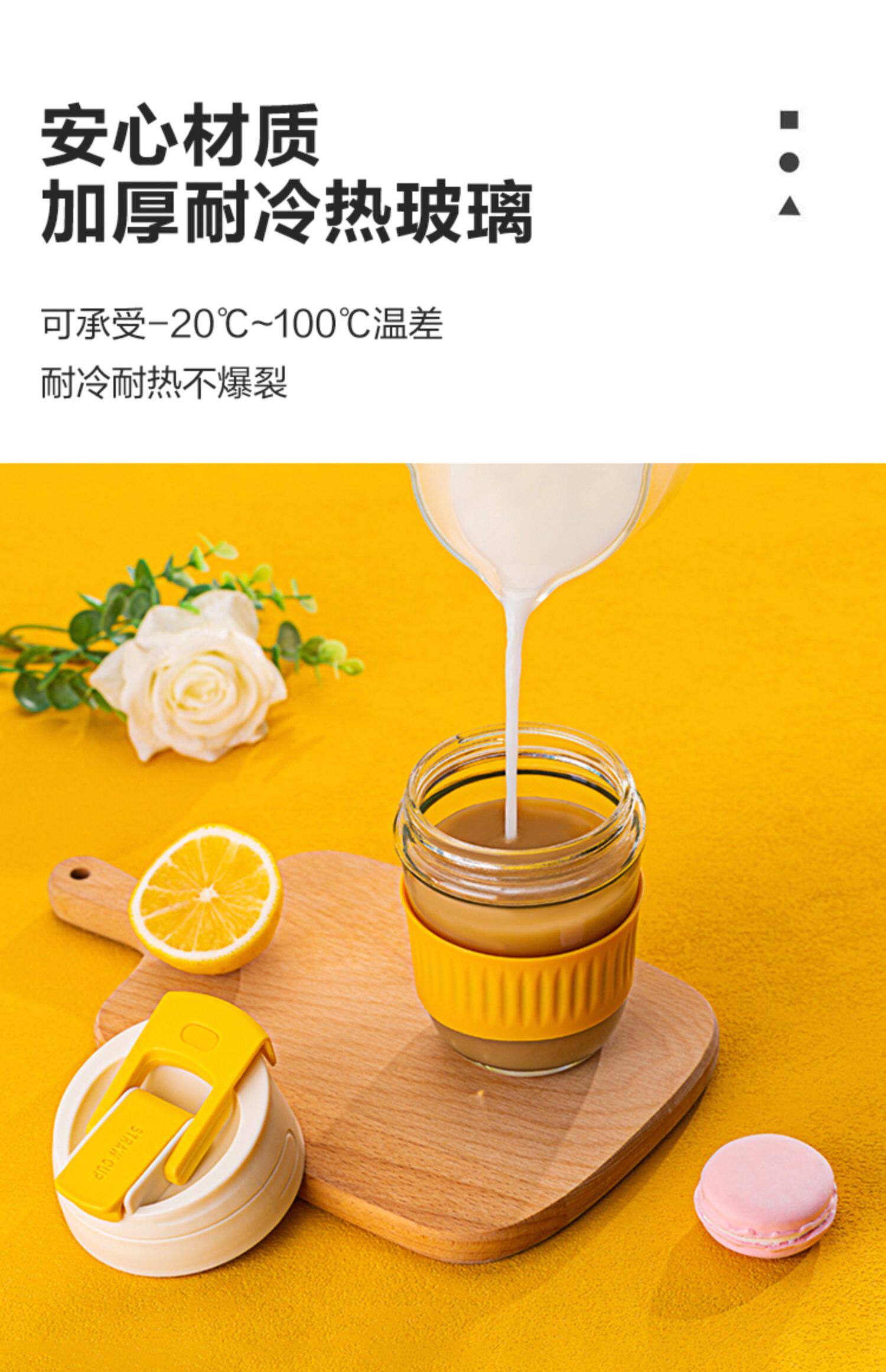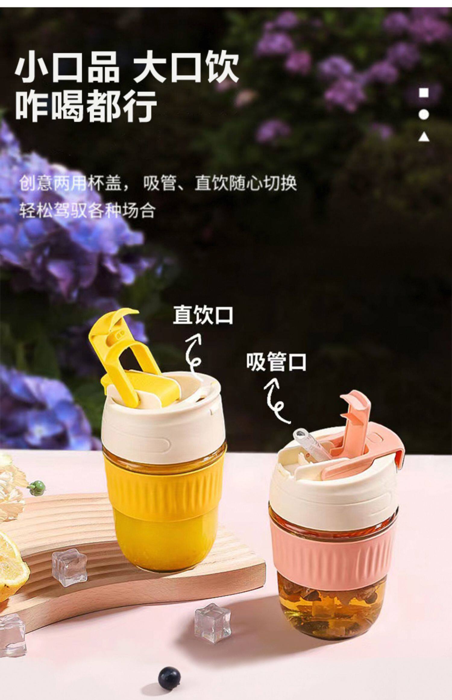 Стеклянный портативный милый кофейный стакан со стаканом