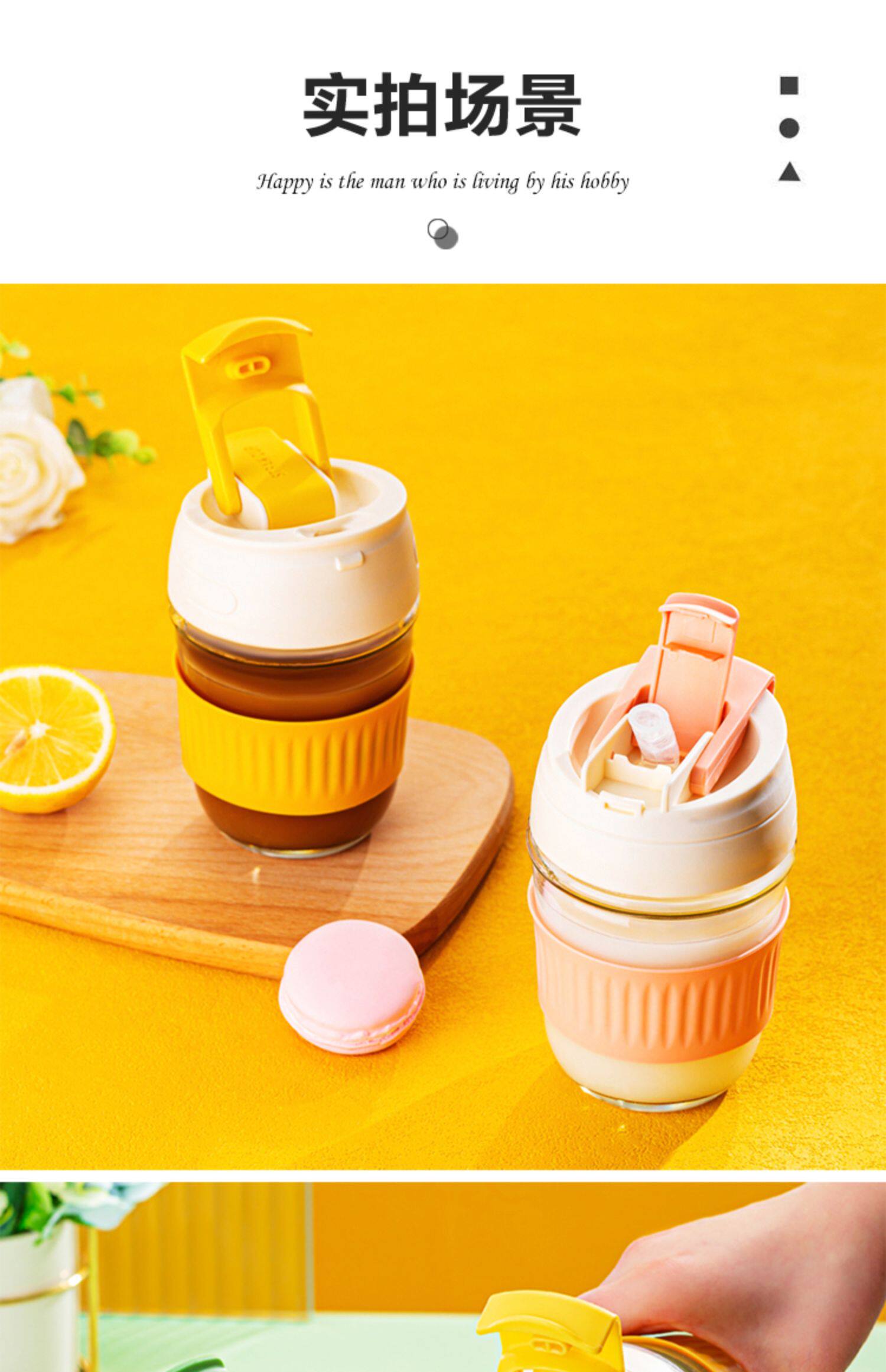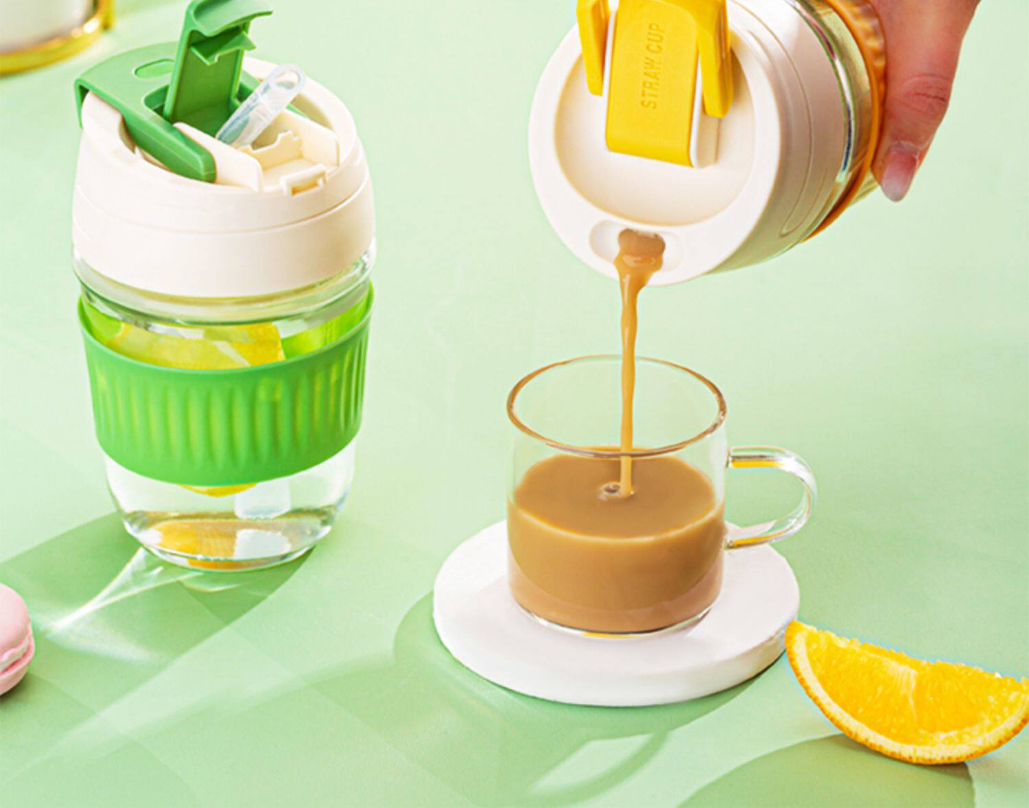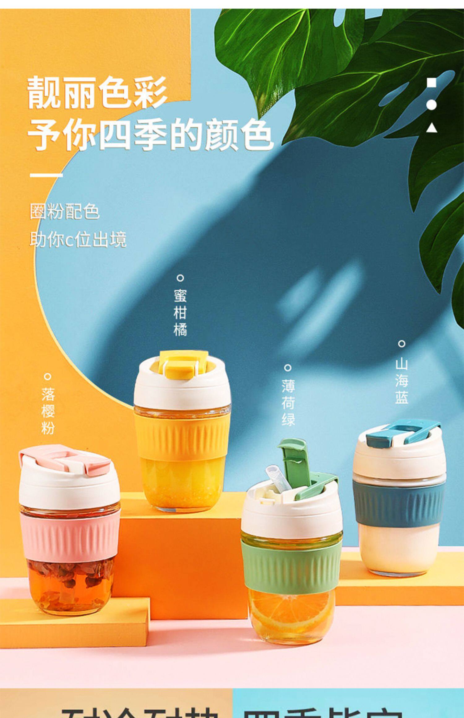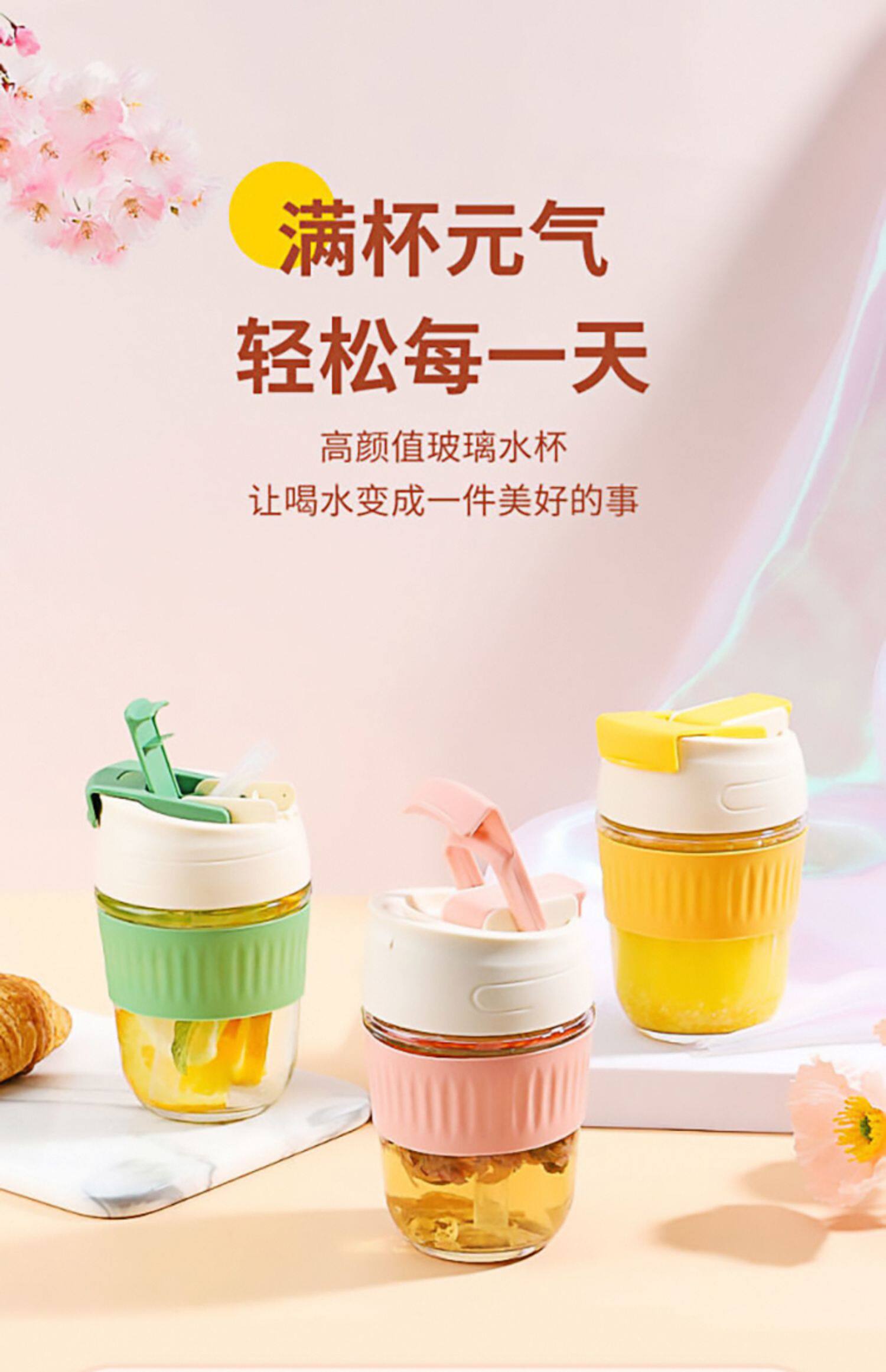 Стеклянный портативный милый кофейный стакан со стаканом