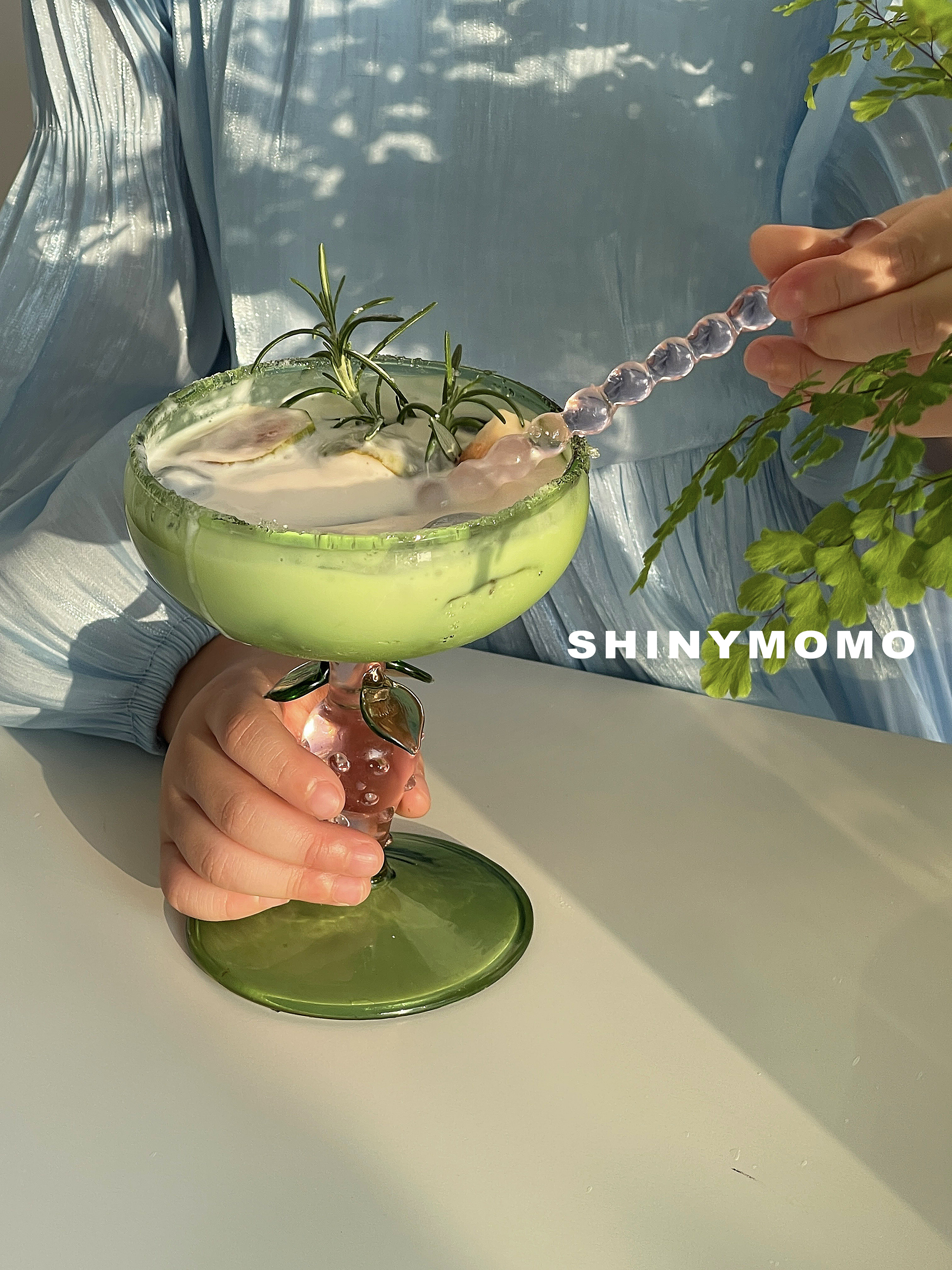 Shinymomo зеленый стеклянный клубничный ледяной чашка стакана чаша миска миска фрукты пшеничная пшеничная таблетка